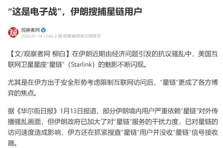 现在基本可以确认了,伊朗安全部队正在挨家挨户地搜查并没收星链终端设备,据估计此前伊朗通过走私大致流入了 10 万台左右的星链终端,这样的规模还是比较大的。 要知道伊朗早在2025年6月就通过立法明确禁止使用星链服务,未经许可拥有、使用甚至运输星链设备都可能面临罚款、鞭刑甚至两年监禁的重罚。 在明确的法律禁令下,这10万台设备只能通过走私渠道流入,而背后的推手其实不难追溯。 去年1月伊朗互联网大规模中断期间,马斯克亲自推动SpaceX对伊朗用户免费开放星链服务,甚至免除了订阅费用,当时就有大量终端通过边境走私进入伊朗境内。 有消息显示,这些走私终端主要集中在边境地区和大城市,使用者通过"打游击"的方式躲避监管,有的用VPN隐藏行踪,有的则频繁转移终端位置。 伊朗之所以如此紧张,核心原因是星链已经突破了单纯的通信工具属性,成为了干涉他国内政的工具。 这一点在乌克兰、苏丹等地区已经多次得到验证,星链在冲突中多次充当关键通信通道,甚至直接为军事行动提供支持。 而在伊朗,星链的作用同样不简单。去年1月的抗议骚乱中,不少用户通过星链将现场视频上传到境外,再由第三方发布到社交媒体,形成了针对伊朗政府的舆论施压。 伊朗方面担心这些设备会被以色列等敌对国家的情报机构利用,成为传递机密信息的通道,毕竟在之前的以伊冲突中,就曾出现过通过星链向间谍分子发送指令、窃取军事机密的案例。 对于任何一个国家来说,这种不受管控的信息通道都是巨大的安全隐患,伊朗的大规模搜查本质上是一场信息领域的"防御战"。 可能有人会觉得,不就是上网设备吗?至于这么兴师动众?要知道星链的技术特性让它很难被管控。星链依靠数千颗近地轨道卫星提供服务,不需要依赖地面通信基础设施,只要终端能看到天空就能联网,这就意味着它能轻松绕过传统的互联网封锁。 为了应对这种情况,伊朗已经动用了军用级别的通信干扰设备,专门针对星链的通信频段进行压制,就像在嘈杂的环境里阻断对话一样,让星链的信号丢包率大幅上升。 但干扰设备也有局限,不仅价格昂贵、耗能高,覆盖范围还有限,只能在重点区域使用,这也是伊朗必须通过挨家挨户搜查来彻底清除终端的重要原因。 从更宏观的视角看,这场星链风波其实是全球卫星互联网领域博弈的一个缩影。星链目前已经在140多个国家和地区运营,但它的扩张始终伴随着争议,因为它早已不是纯粹的商业服务,而是和美国的外交政策深度绑定。 意大利、加拿大等国就曾因为相关争议暂停或终止与星链的合作,欧盟、日本、俄罗斯等更是纷纷推进自己的卫星星座计划,目的就是摆脱对星链的依赖,保障自身的通信安全。 毕竟谁都清楚,把通信命脉交给别人,就相当于把安全隐患握在别人手里,就像当初各国纷纷发展自主卫星导航系统一样,卫星互联网已经成为大国竞逐的新赛道。 回到伊朗的这次搜查行动,其实不难理解它的无奈与决心。对于伊朗来说,这10万台星链终端不仅违反了本国法律,更直接威胁到国家信息安全和主权完整。 而马斯克和美国政府的介入,让这件事从商业问题彻底变成了地缘政治问题。接下来这场博弈可能还会持续,伊朗的搜查行动能否彻底清除星链终端尚未可知,星链是否会采取其他方式重新渗透也犹未可知。 但有一点可以肯定,在卫星互联网时代,如何平衡技术进步与国家安全,如何维护自身的信息主权,将是每个国家都必须面对的重要课题。 MCN双量进阶计划