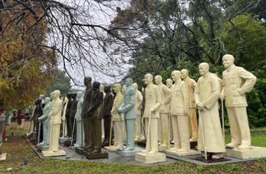 过去台湾的每一座学校和公共设施都摆放有老蒋的雕像,在蒋家失权后,这些雕像被集中安置于一个叫“慈湖纪念雕塑公园”的地方。 说白了,这堆曾霸占台湾街头校园的老蒋雕像,不过是独裁时代的政治符号,如今扎堆“收容所”的下场,早注定了它们经不起历史较真。 过去在台湾走一圈,简直像闯进了老蒋雕像的“主题公园”,学校操场边、政府办公楼前、公园广场上,几乎只要是公共空间,就必有一尊他的铜像矗立,有的西装革履,有的身着中山装,清一色摆出英武挺拔的姿态,台座还得修够两米高,仿佛要时刻俯视众生。 这股塑像热潮可不是凭空冒出来的,1945年国民党接收台湾后,就忙着拆毁日据时期的日本雕像,转而大规模塑造蒋介石和孙中山的铜像。 后来蒋介石去世,更是掀起“一人一元”的捐献运动,短短几年间,全台大小雕像竟多达四万五千余尊,平均每平方公里就有一两座,密集程度堪称奇观。 有人说他有过形式上统一中国、领导正面战场抗战的功绩,可这些功劳在历史长河里根本站不住脚。 他在大陆推行独裁统治,靠军统中统清洗异己,“四一二”政变中欠下无数革命先烈的血债,抗战后期消极抗日积极反共,最终因腐败无能失去民心,仓皇溃逃台湾。 这样一个败将,凭什么在台湾享受如此殊荣?答案再明显不过,不过是国民党迁台后,想靠这些雕像强化个人崇拜,给民众灌输“反攻大陆”的幻想,用偶像崇拜维系统治根基罢了。 然而蒋家失权后,这些雕像的好日子也到了头,民进党上台后掀起“去蒋化”浪潮,铜像被砍头、喷漆、拆毁的新闻屡见不鲜,台湾甚至被讽“亚洲砍城”。 桃园市的慈湖纪念雕塑公园成了它们的最终归宿,四百多尊雕像挤在四公顷的山坡上,有的缺了胳膊,有的被涂鸦,还有的被艺术家拼接成“伤痕与再生”的装置,昔日的威严早已荡然无存,活脱脱一个“雕像收容所”。 说起来也讽刺,当年为塑造这些雕像,不仅有官方强制规定,还发动民众捐款,中学生挨家挨户宣传,妇女会上门游说,闹得沸沸扬扬,可历史终究是公平的,一个在大陆犯下累累罪行、最终兵败逃窜的统治者,再怎么靠雕像拔高自己,也掩盖不了史实。 那些被他残害的革命先烈,他们的冤魂永远不会原谅这笔血债。 我感觉等解放台湾的那一天,这些雕像根本没必要再占用土地,不如把它们搬到赴台烈士纪念馆门口,让它们乖乖给先烈们站岗,算是对历史的一点交代。 至于剩下的,该砸的砸,该回炉的回炉,一个都别留,毕竟,用这些铜像炼出的钢材,或许还能派上正经用场,总比让它们继续充当虚假的历史符号强。 以上仅为个人看法,历史功过自有公论,这些雕像到底该何去何从?你有什么不同想法,欢迎在评论区聊聊。