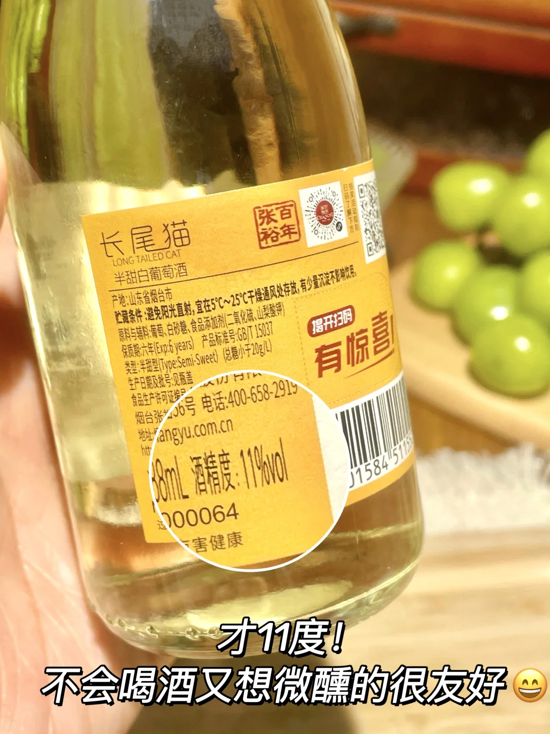 就是这个张裕长尾猫白葡萄酒!! 讲真!一开始是冲着它小颜值入的。。。。 毕竟谁能拒绝这么一只可爱又慵懒的小猫呢🤭 属实没想到一口就把我拿捏了!好喝!直接沦陷的程度~ 第一口感觉像在喝果汁,酸甜清爽的口感一点都不腻人! 果香和花香中混合淡淡的酒香,入口贼顺~加点冰块🧊喝起来更过瘾!而且一点都不辣喉!对于我这种不会喝酒的人太友好了!! 11度!很适合不会喝酒但偶尔又想小微醺 的女生!! 现在睡前都惦记这口,关键!好喝不上头! 准备再多囤点,朋友聚会的时候🍻人手一瓶边喝边聊天!想想太巴适惹!! 推荐小趴菜们试试! 🔞:未成年不得饮酒 张裕长尾猫白葡萄酒白葡萄酒张裕百年微醺时刻好喝的果酒今夜来一杯微醺酒张裕长尾猫长尾猫白葡萄酒