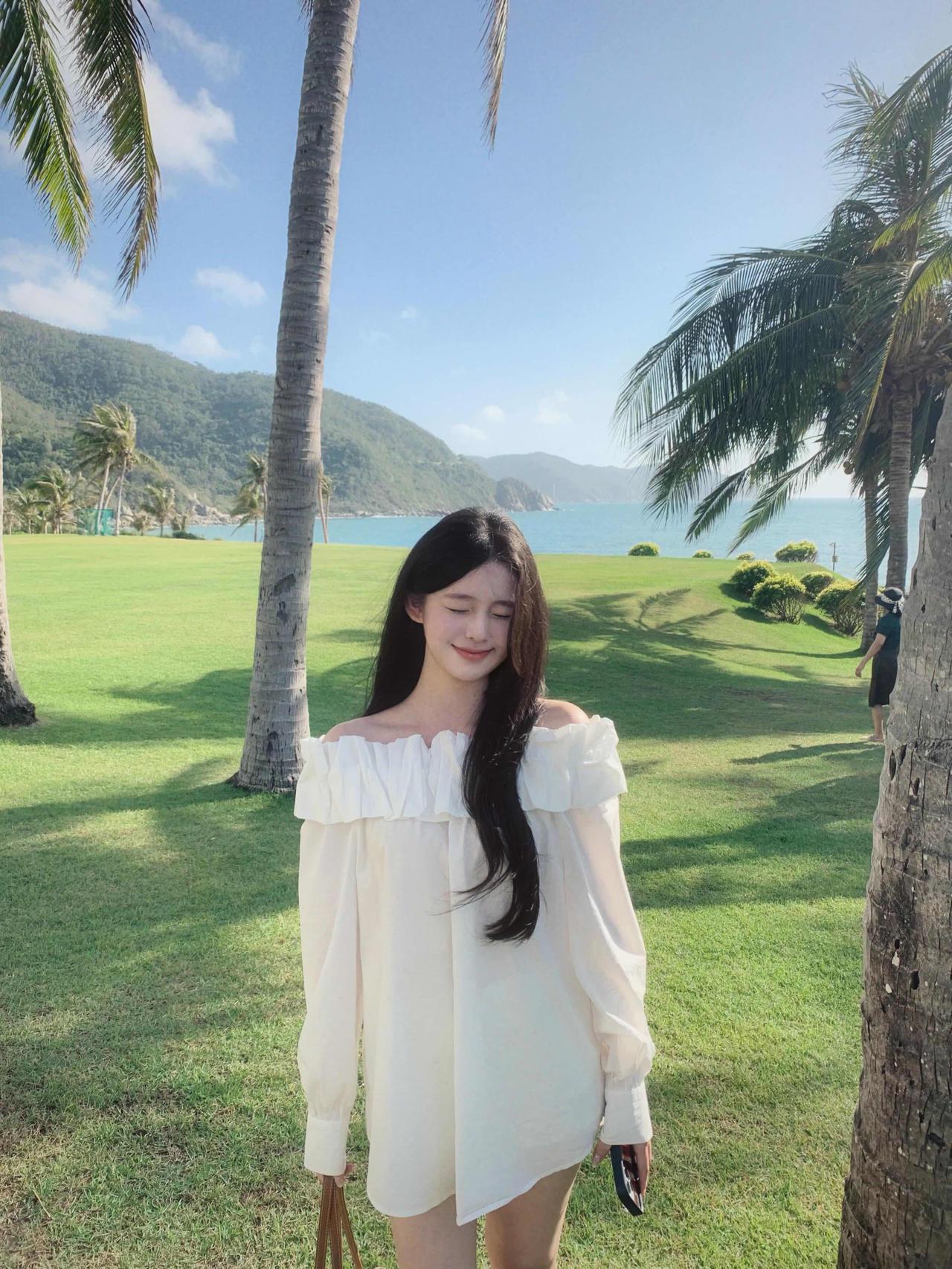 清新夏日穿搭,粉色背心搭配白色短裙,坐在木椅上,阳光洒进房间,少女感满满!🌞?