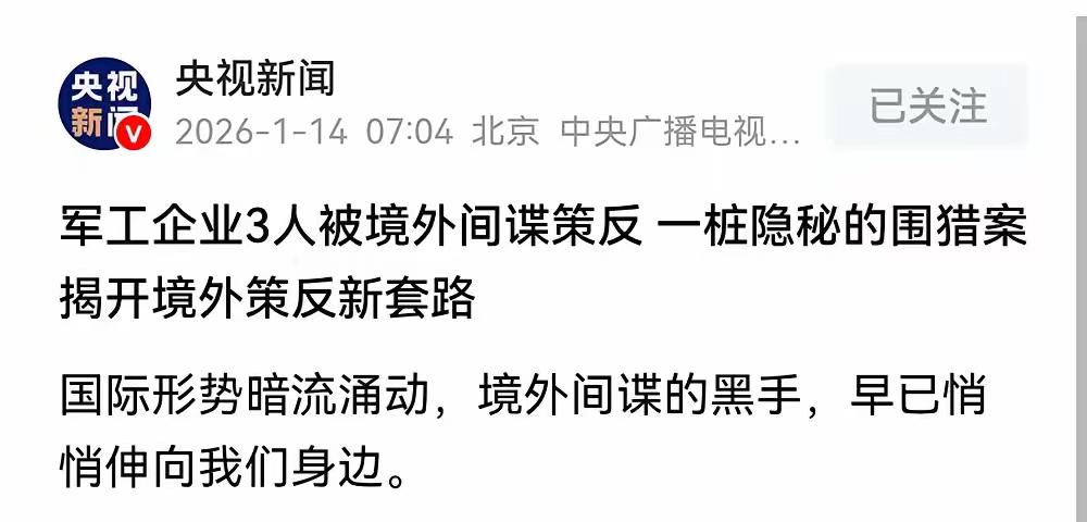 直击软肋!央视曝光军工重大泄密:间谍使用了美人计当“爱情”成为武器:警惕糖衣炮弹背后的隐形战场 新闻里轻描淡写的“美人计”三个字,背后是精密布局的情感陷阱。它瞄准的或许不只是掌握核心机密的科研人员,更是人性中普遍存在的对情感联结的渴望、对认可的追求,以及在孤独或压力下不设防的瞬间。间谍手段早已超越电影中的夸张情节,融入日常社交、学术交流甚至网络互动,变得无形而致命。 我们生活在一个信息如空气般无处不在的时代。社交动态、专业论坛的讨论、无意透露的工作节奏,都可能成为拼图的关键一块。敌人要的未必是一整份图纸,也许只是你抱怨加班时提到的某个项目代号,或是合影背景中模糊不清的示意板。国家安全的防线,因而前所未有地与我们每个人的生活细节紧密相连。 但揭露黑暗的目的,不是为了让我们活在疑神疑鬼的恐惧中。正相反,它是一记响亮的警钟,提醒我们珍贵之物值得守护。这份守护,始于清醒的认知:认识我们工作的价值,认识我们日常信息的重要性,认识那些试图以“捷径”“厚遇”或“浪漫”包装的诱惑本质。国家安全机关构筑了钢铁长城,而每位公民的警惕意识,则是让这座长城密不透风的砂浆。 真正的安全防线,是专业机构雷霆万钧的打击能力与全民清醒自觉的警惕意识相结合。当我们为国防尖端成就欢呼时,也应明白,守护这些成果不仅靠前沿的科研团队,也靠我们每个人在涉外交往中多一分谨慎,在网络分享时多一分考量,在面对不寻常的“热情”时多一分淡定。 间谍与反间谍,是古老又崭新的较量。在这个故事里,没有旁观者。每一次理性的判断,每一份责任的担当,都是在加固我们共同的盾牌。当我们理解黑暗的手法,便能更坚定地走向光明;当我们看清糖衣下的炮弹,才能更珍惜也更有力量去守护这份来之不易的和平与成就。 这不仅是国家安全部门的一场胜利,更是全民安全意识的一次淬火。看完这些,你觉得自己日常的哪些信息,也值得被小心守护呢?