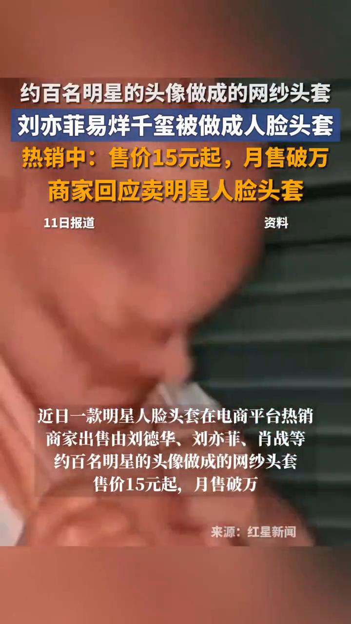 约百名明星的头像做成的网纱头套,刘亦菲、易烊千玺被做成人脸头套。 红星新闻。 近日一款明星人脸头套在电商平台热销,商家出售由刘德华、刘亦菲、肖战等。记者询问商家是否获得头像的授权,商家答复"没有"。律师说,商家生产销售明星人脸头套的行为存在侵犯他人肖像权风险。 民法典规定,未经肖像权人同意不得制作、使用肖像权人的肖像,商家行为也不属于为个人学习、艺术欣赏等使用他人肖像的免责情形。