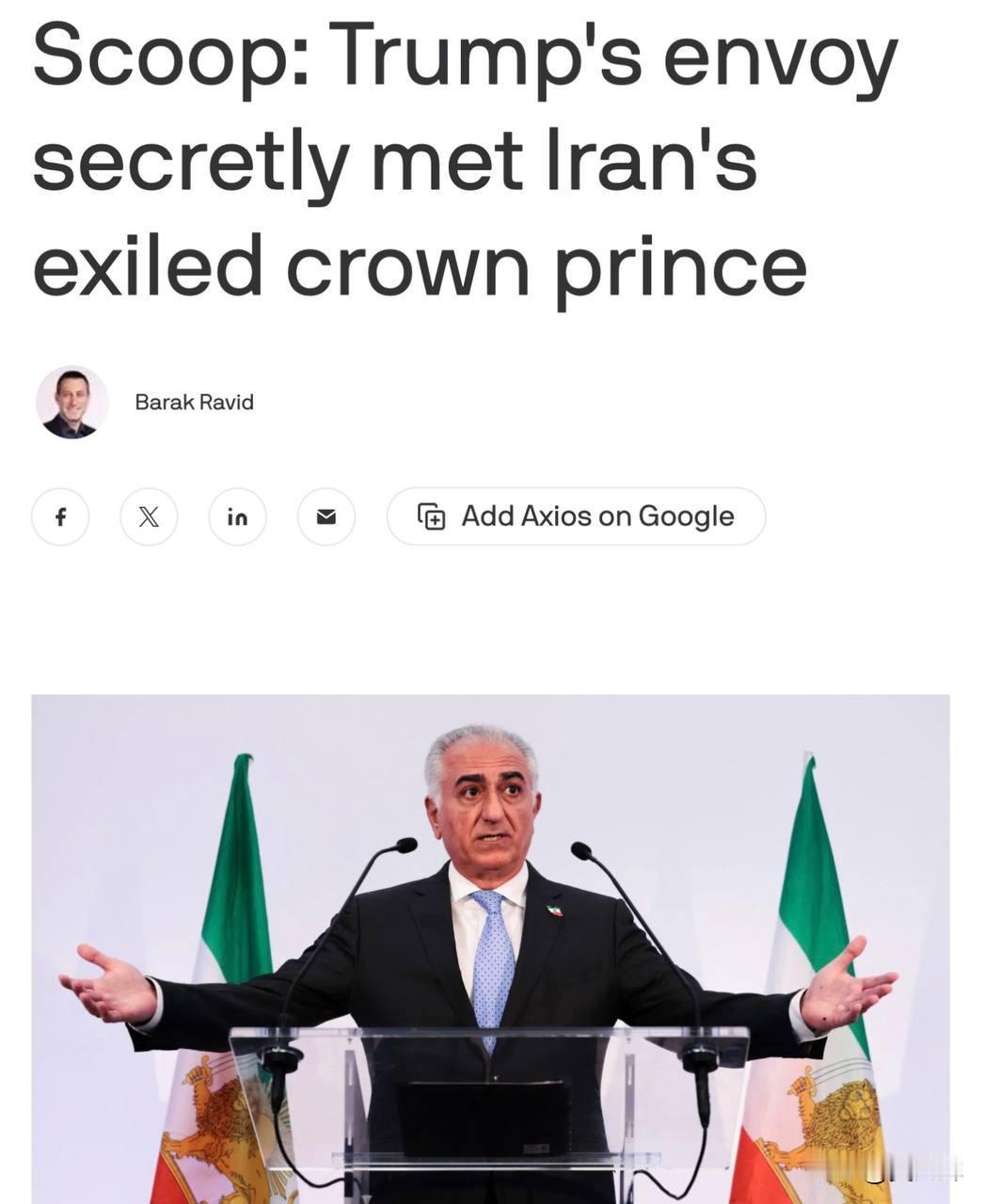 特朗普特使秘会伊朗末代王储 1月14日,Axios新闻网援引消息人士报道,特朗普中东问题特使维特科夫与伊朗反对派领袖、伊朗末代国王的长子礼萨·巴列维举行了闭门会面。 该媒体称,这是自伊朗爆发大规模抗议活动以来,美国政府与伊朗反对派进行的首次高层接触。 Axios还强调,巴列维正试图将自己定位为伊朗现政权被推翻后的过渡时期领袖。