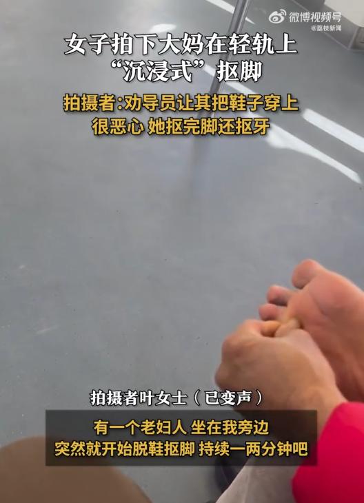 隔着屏幕都有味!1月13日,浙江金华,一女子刚上轻轨,就看见一位大妈脱了袜子,开始“沉浸式”抠脚,劝导员上前提醒后,大妈虽将袜子穿上,却把抠脚的手伸进嘴里扣牙!这让女子被恶心到,但又不好去说什么。网友:不怕嘴里得脚气吗? 1月13日,金华的城市轨道交通系统里,发生了一件足以刷新认知底线的事。当事人叶女士回忆起那个场景,估计现在还能反胃。车厢里的座位紧挨着,这本来就是城市通勤的常态。但谁也没料到,旁边那个位置突然变成了私人会所。一位中年女性乘客直接脱掉了鞋袜,把脚抬了起来。 这已经不是礼貌层面的问题了。在密闭空间里,她把个人卫生习惯的外部性无限放大,周围所有人都成了被动买单者。那股味道大概率已经突破了车厢空调的净化能力。 更夸张的是她的专注度。那种全情投入的状态,仿佛整个车厢都是她家客厅。脚趾缝里的清洁工作开展得有条不紊,旁边人的眼神对她来说完全是透明的。 劝导员最终还是出现了,这算是公共秩序的最后一道防线。在被提醒之后,这位乘客倒也没反抗,把袜子穿了回去。如果故事到这儿结束,顶多算个让人皱眉的小风波。 但接下来的操作才是真正的重头戏。那只刚刚完成高难度作业的手,连过渡都省了,直接转场去了另一个战场她张开嘴,开始清理牙缝。 从脚底板到口腔黏膜,细菌完成了一次零损耗的跨区域转移。这种生物安全上的豪赌,连医学教科书都不敢这么写案例。 叶女士坐在旁边,胃里已经开始翻腾。这种视觉冲击比任何卫生宣传片都要来得直接,因为它就发生在你眼前不到半米的距离。 公共交通的本质是什么?是陌生人之间达成的一种临时性默契:你守住你的边界,我维持我的体面,大家相安无事地完成这段旅程。但这个默契在那一刻彻底失效了。 这位乘客大概觉得,反正袜子已经穿回去了,劝导员的任务也完成了。至于那只手去哪儿、干什么,属于她的个人自由。但问题在于,真菌感染从来不会停留在个人范畴。 脚气和口腔溃疡本来是两个独立的健康风险点,现在被强行打通了传播路径。这种对身体防护机制的无视,说实话有点让人震惊。 更隐蔽的威胁还在后面。那只手接下来会触碰扶手、刷卡机、座椅靠背,每一次接触都是一次病菌的再分配。后续上车的乘客根本不知道,自己正在和一场微生物转移事件擦肩而过。 叶女士虽然全程目睹,却没法开口说什么。面对如此强大的心理屏障能力,任何劝说都显得多余。这种认知上的断层,已经超出了道德教育能覆盖的范围。 城市化进程把不同背景的人塞进同一个车厢,这本身就是对公共意识的考验。有些人习惯了私人空间的随意,把这套逻辑直接搬到了公共场域,完全感知不到边界在哪儿。 这件事给所有人提了个醒。下次握住扶手的时候,或许得在心里多盘算一层:上一个触碰者到底经历了什么,这根本无从得知。 共享空间从来不是免费的午餐,它需要每个参与者支付"克制成本"。但总有人选择违约,让周围人替她承担溢出的风险。这笔账算下来,谁都不划算。 信息来源:《大妈轻轨上脱袜子先抠脚后抠牙》半岛晨报
