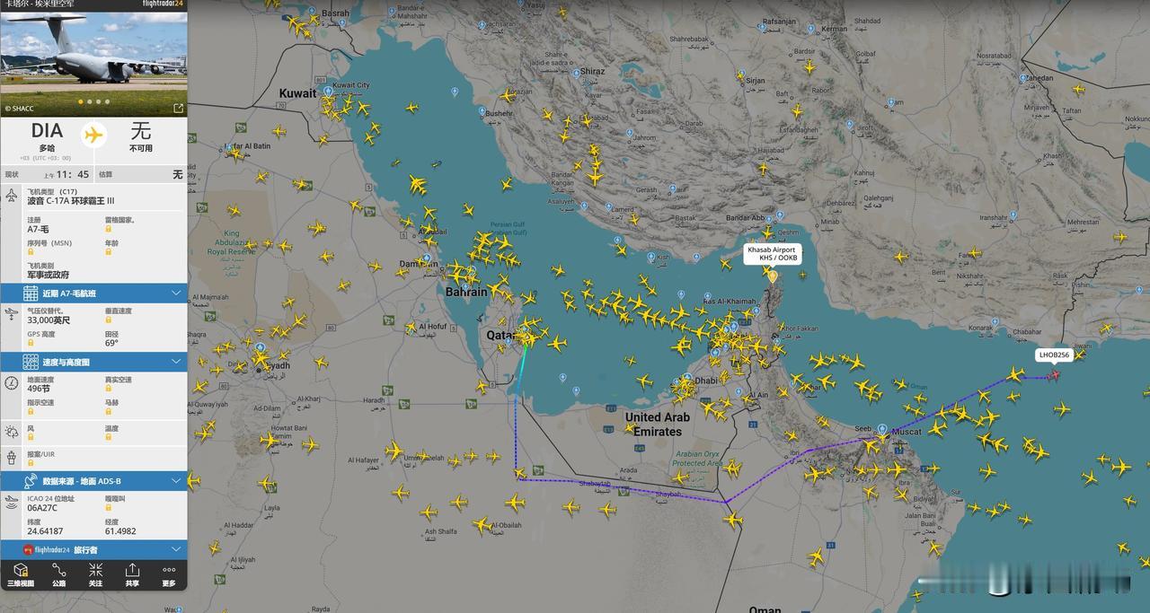 此时区域空中情况如下: 1、美军MQ-4C一直在霍尔木兹海峡反复转悠。 2、过去48小时里,属于卡塔尔空军的C-17A环球霸王III,已经往返巴基斯坦木尔坦国际机场至少3趟。 美战机中东部署 美c17运输机 C-17运输机 阿联酋战机 美国f16战机 美F-16战机 美国F-16 土耳其战机 美军b52 JF17战机
