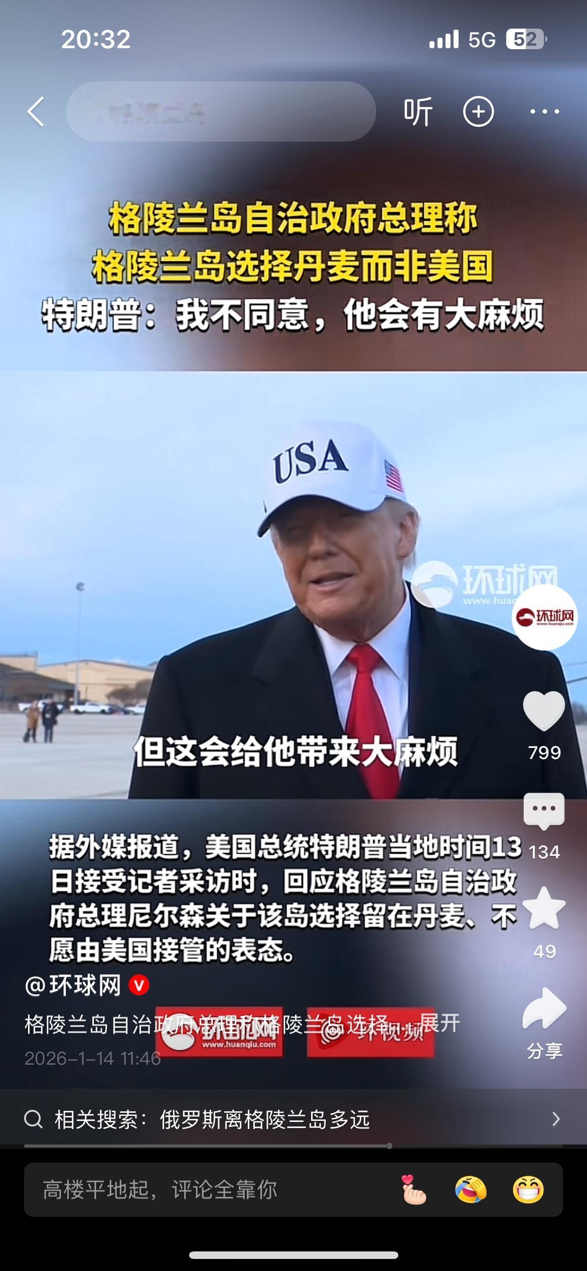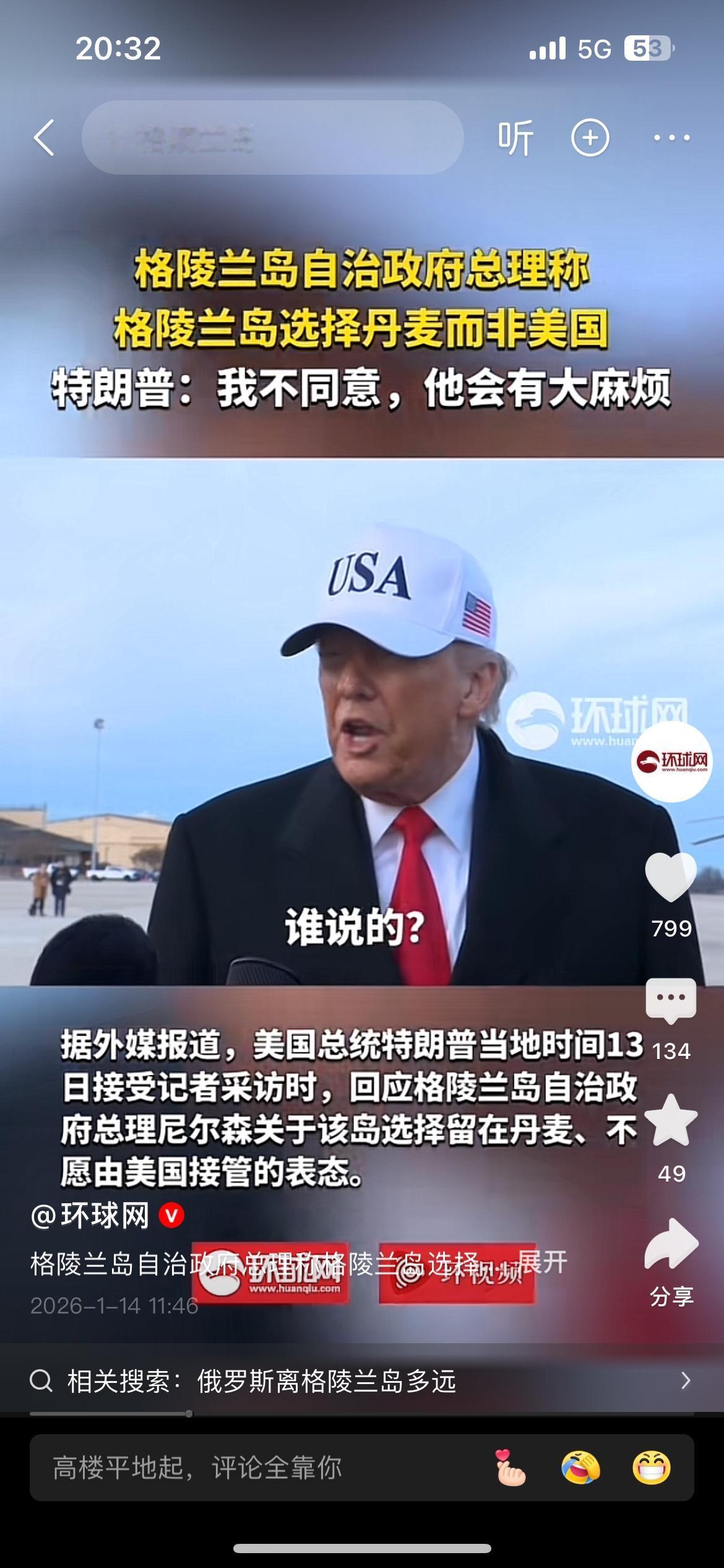 看到没有强取豪夺的逻辑很简单,你说你愿意留在丹麦,那是你们自己的问题,和我美国没有什么关系。 格陵兰岛那块地,我是看上了,现在我让你们加入美国,是看得起你们,我准备给你们每人支付10万美元,加入美国,这是敬酒,不要“敬酒不吃吃罚酒”,那样你们将有大麻烦!