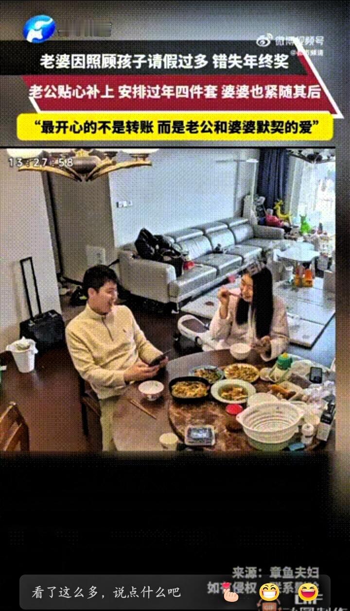 江苏一女子因为带娃请太多假,公司就把年终奖给扣了。她心里有点不是滋味,吃饭时随口跟老公提了一嘴这件事,没想着要什么补偿,结果当天中午就收到了老公的2000块转账,备注写着“补你的年终奖”。 之后老公又分三次转来2000块,每次都特意叮嘱她,这笔钱用来做头发、做美甲,剩下的再添身新衣服、买个喜欢的包包,把“过年四件套”妥妥安排好。女子正满心欢喜的时候,手机又弹出转账提醒,是婆婆转来的2000块,没多说别的,只一句“辛苦啦,买点自己喜欢的”,简单的话却透着实打实的心疼。 这件事被她分享到网上,网友们纷纷感慨她嫁对了人。 其实很多宝妈都面临这样的困境,一边是需要投入精力的工作,一边是离不开照料的孩子,为了平衡两者,不得不做出让步,受了委屈也常常自己消化。她们最怕的不是吃苦受累,而是自己的付出被忽视,那些默默的妥协没人看见。 这位女子的幸运,从来不是嫁了多有钱的家庭,而是她的委屈有人懂,她的不易有人疼。公司扣掉的是一笔年终奖,可老公和婆婆补上的,是藏在细节里的偏爱和尊重。 职场上的小遗憾,在家人的温暖里瞬间就被抚平了。这样互相体谅的家庭,才是婚姻最踏实的模样。