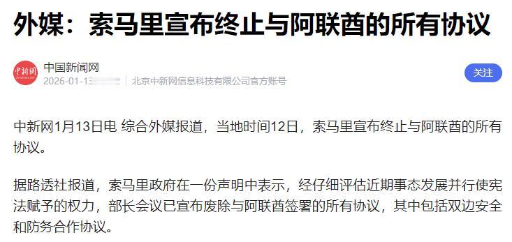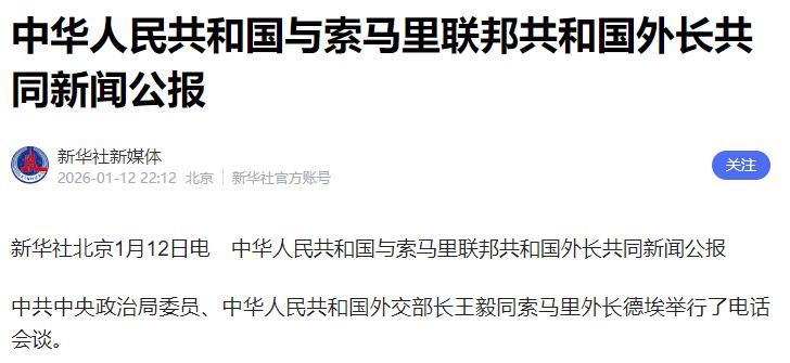 中国撑腰效果立竿见影,索马里终止与阿联酋所有协议,丝毫不惧以色列威胁!   1月12日,索马里政府突然抛出重磅消息,宣布彻底终止与阿联酋签署的所有合作协议,从经贸合作到安全防务,一刀两断毫不含糊。这波操作让向来在非洲之角呼风唤雨的阿联酋措手不及,更让背后撑腰的以色列颜面尽失。   就在半个多月前,以色列才刚成为首个承认索马里兰“独立”的国家,本想借这个突破口扎根非洲,没成想刚迈出第一步就遭当头棒喝。   这些年,阿联酋一直没安好心,明里暗里支持索马里的分裂势力索马里兰,不仅在当地的柏培拉港大搞投资建设,还偷偷部署军事设施,全程绕开索马里联邦政府,把分裂地区当成了自己的势力范围。   前不久阿联酋支持的武装在也门战败后,其军事高层竟然借道索马里兰的港口,未经索马里政府同意就擅自进入索马里境内转机回国,这种赤裸裸蔑视他国主权的行为,彻底点燃了索马里的怒火。   而以色列的掺和,更是让局势雪上加霜。2025年12月26日,以色列突然官宣承认索马里兰为“独立主权国家”,还签了建交协议要设大使馆,成了第一个公开分裂索马里的国家。   这步棋打得极坏,明摆着是想跟着阿联酋在非洲之角分一杯羹,借着支持分裂势力换取战略利益。索马里兰本就是索马里领土不可分割的一部分,国际社会大多都承认这一点,以色列的做法不仅遭到索马里政府的强烈反对,连非洲和阿拉伯国家都集体发声谴责。   换作以前,面对阿联酋这样的石油富国和以色列这样的地区强国,索马里或许只能忍气吞声。毕竟常年战乱让这个国家经济凋敝,急需外部援助,根本没底气跟大国硬碰硬。   但这次索马里之所以能如此毅然决然,甚至面对以色列的潜在威胁都毫无惧色,核心原因就是背后有了中国的坚定支持。   就在索马里宣布终止协议的前一天,王毅外长专门与索马里外长通了电话,明确重申中方坚定支持索马里的领土完整,强调索马里兰是索马里不可分割的一部分,这无疑给索马里吃了一颗定心丸。   这份支持可不是口头说说那么简单,而是基于中索两国长期的战略伙伴关系。   这些年,中国一直尊重索马里的主权和领土完整,从不干涉其内政,还在经贸、发展援助、人文交流等多个领域给予实实在在的帮助,帮索马里改善民生、推进发展。   反观阿联酋和以色列,一个想着借分裂势力抢占战略港口,一个想着趁火打劫扩大地区影响力,两者的用心高下立判。有了中国这个靠谱的伙伴撑腰,索马里自然有了对抗外部干涉的底气,敢于用终止协议的强硬方式捍卫自己的国家主权。   现在索马里已经明确表态,终止与阿联酋的所有协议是经过全面评估的主权决定,背后有确凿证据证明阿联酋的行为破坏了其国家利益。虽然阿联酋方面至今还没给出回应,但明眼人都能看出,这是索马里对外部干涉的一次强力反击,也是对中国支持的最好回应。   在国际关系中,主权平等、不干涉内政是《联合国宪章》的基本准则,任何想靠着欺负弱小、分裂他国牟利的行为,最终都只会遭到反噬。