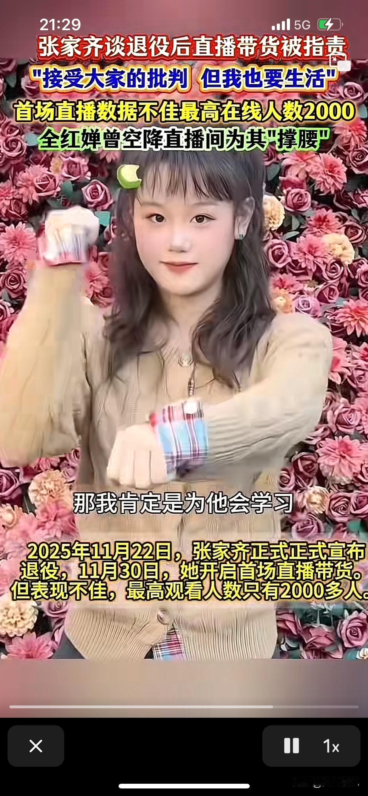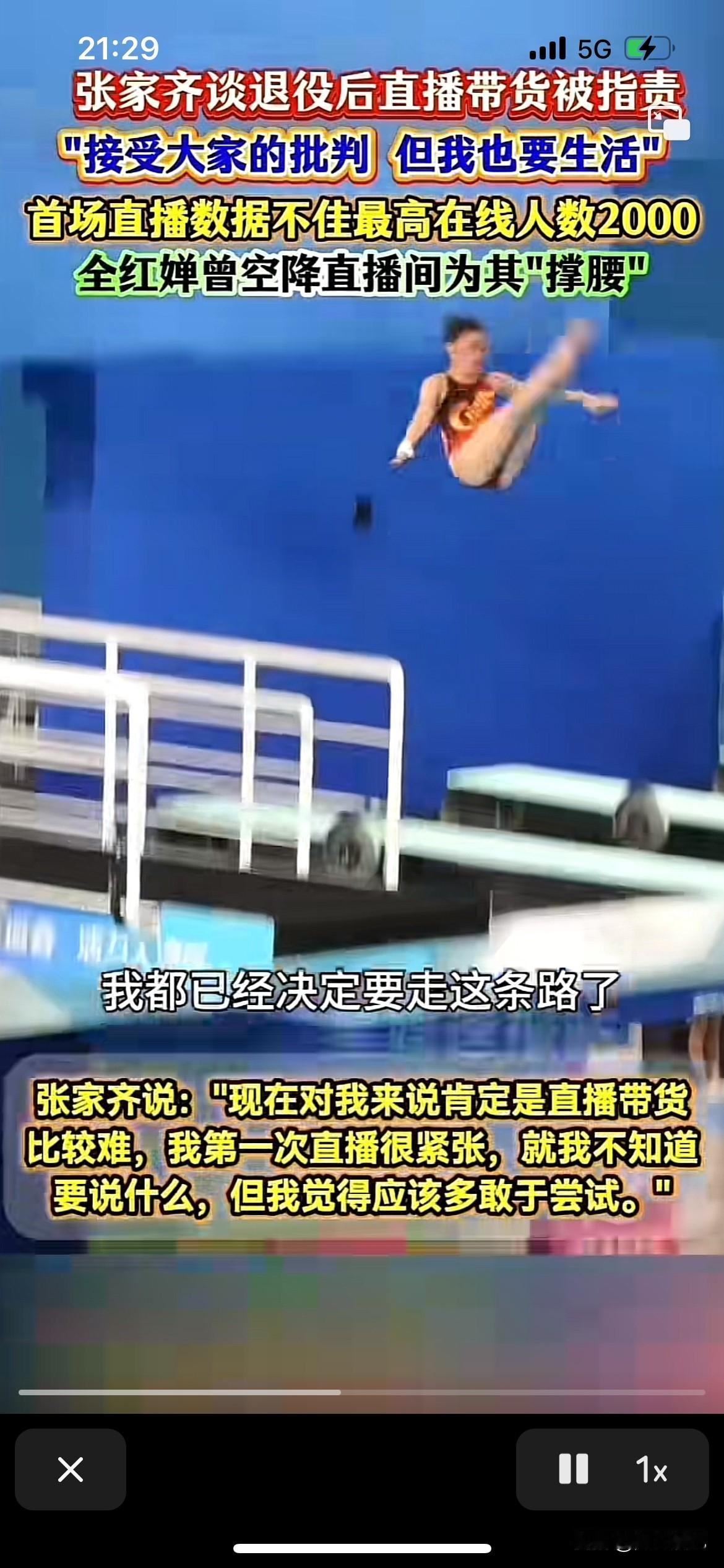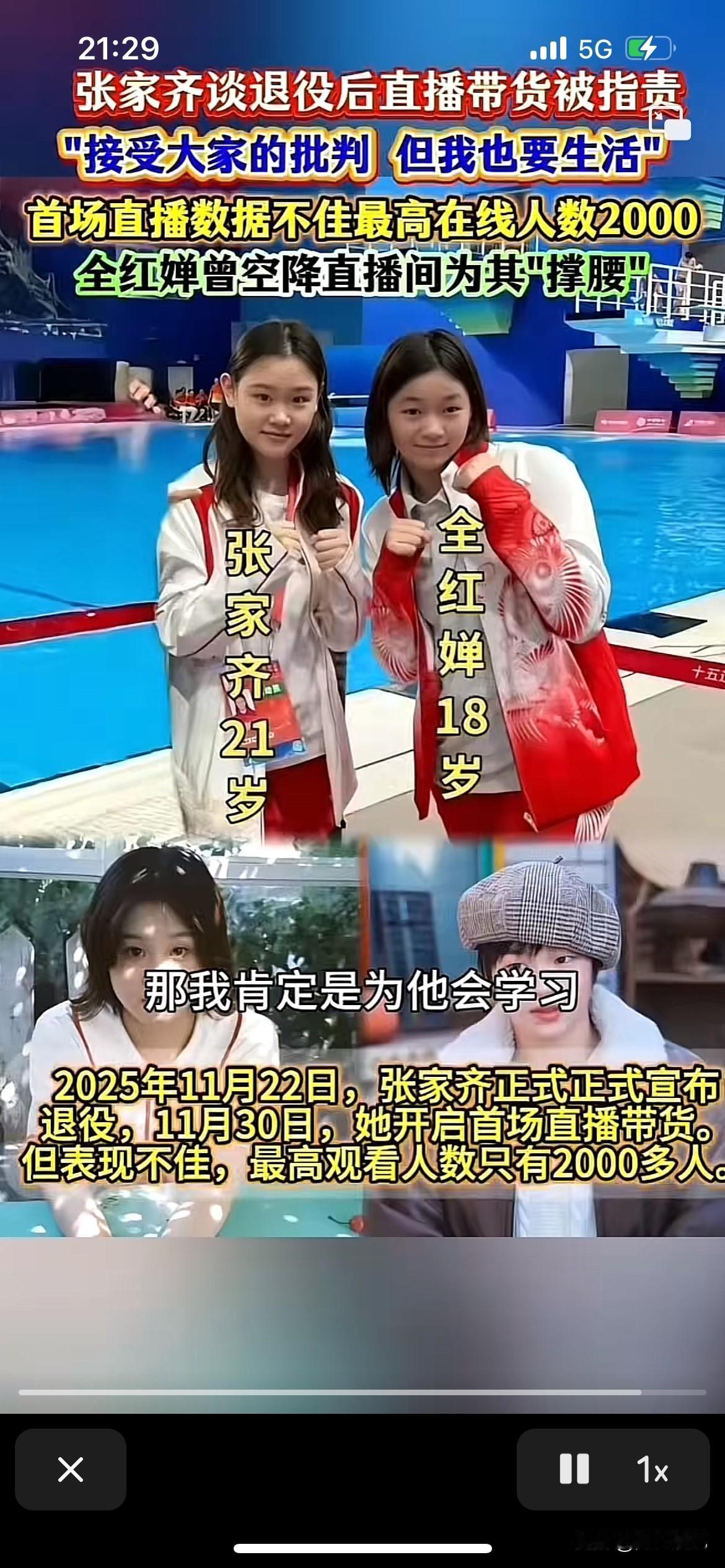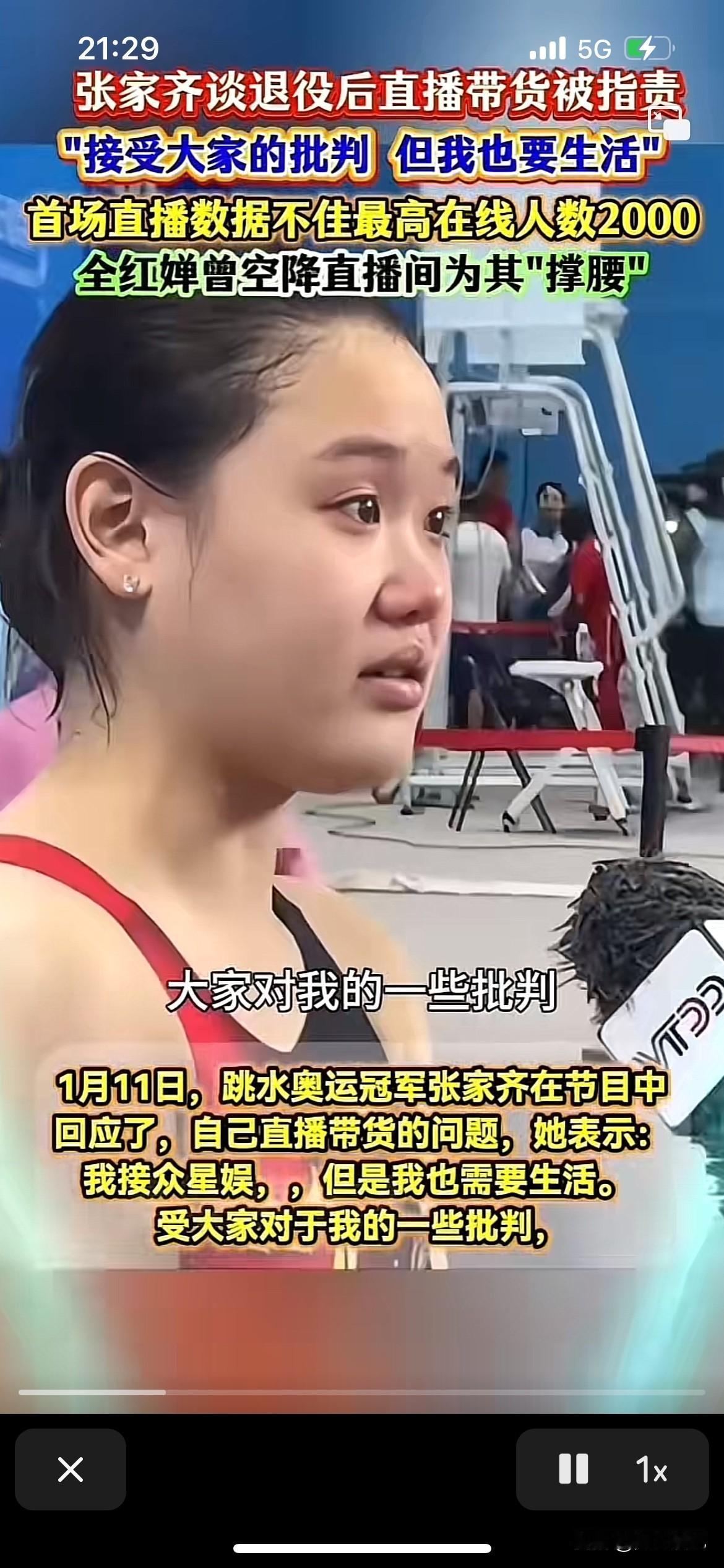 张家齐终于爆发了,忍无可忍,我接受大家对我的批评,但是我也要生活啊,凭什么我不能直播带货,我已经退役了,我只是一个普通的人,也是要赚钱养家,你们有什么资格说别人呢。 我们都支持张家齐直播,不能让她寒心,本来生活就艰苦,其实只要把握好质量关,随他们说去吧,嘴长在他们的身上。我们也管不住,只要质量管好,奥运冠军又不是不能卖东西啊。