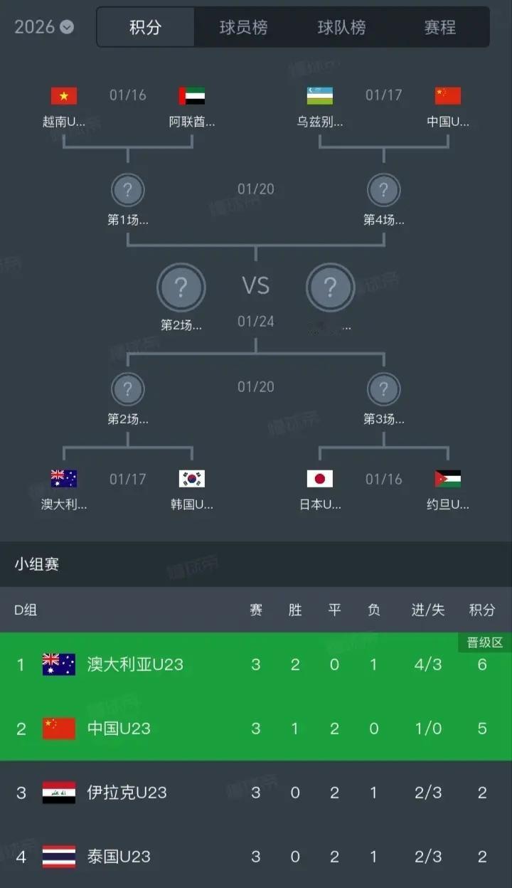 韩国媒体遗憾没和中国队1/4决赛相遇,中国媒体和球迷也遗憾中国队没能再打韩国,其实我的内心也是希望中国队拿下泰国,以第一名强势出线打韩国,这支中国U23去年曾经双杀韩国,要是能在亚洲杯再次3杀韩国,把韩国队亲自送回家,那该多爽啊!打完韩国进4强再打日本,那该多好啊!可惜这次没有机会了,没想到澳大利亚补时连进2球2比1绝杀伊拉克,澳大利亚后来居上成了小组第一名,中国队成了小组第二名,无论怎么样,中国U23国足能首次进入U23亚洲杯8强就已经创造历史了,中国队已经很棒了,久违的胜利,球迷终于等到淘汰赛了,中国队继续加油吧!梦想还在继续,一切皆有可能!