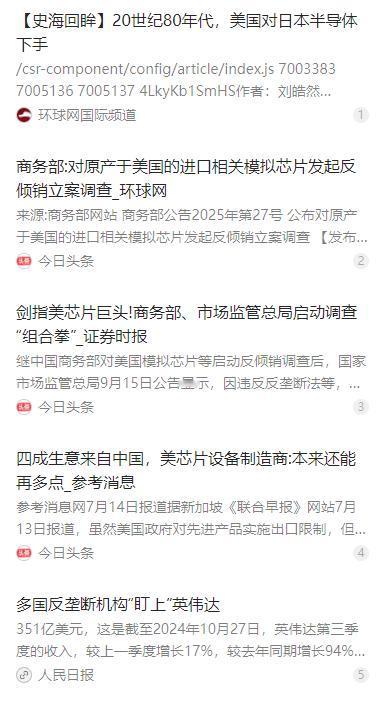 俄媒:中国打掉了美国的傲气。俄媒认为,中国一面宣布对美国进口芯片反倾销调查,一面宣布英伟达违法,事实上是针对美国在中低端芯片问题上搞倾销的行为,美国的如意算盘是想趁中国半导体企业尚未发展起来,利用价格战彻底击垮中国的半导体产业。俄媒热议特朗普引以为傲的芯片卡脖子,中国已经有底气反手一击。 麻烦看官老爷们右上角点击一下“关注”,既方便您进行讨论和分享,又能给您带来不一样的参与感,感谢您的支持! 近期中国在半导体领域的两项重磅举措,引发国际社会广泛关注,俄媒更是直言,这波操作彻底打掉了美国在芯片产业上的傲气。一边是商务部对美国进口芯片发起反倾销调查,一边是市场监管总局对英伟达展开反垄断立案,两记 “组合拳” 精准回应美国的芯片霸权策略。 这一切的起因要从美国的双重操作说起。2025 年 9 月 13 日,中国商务部正式公告,对原产于美国的 40 纳米及以上通用接口芯片和栅极驱动芯片启动反倾销调查。此次调查并非突然,而是源于国内产业的持续诉求,2025 年 7 月江苏省半导体行业协会就已代表相关产业提交申请。 数据最能说明问题,2022 到 2024 这三年间,美国相关芯片对华出口量一路攀升,从 11.59 亿颗增至 15.9 亿颗,增幅达到 37%。但出口量增加的背后,是赤裸裸的低价倾销,平均价格狂跌 52%,德州仪器、博通、ADI、安森美等美企凭借低价抢占了中国 41% 的市场份额。 这种不公平竞争让中国本土厂商苦不堪言。原本正在成长的国内芯片企业,遭遇了前所未有的生存压力,开工率直接降到 50%,毛利率更是不足 10%,不少企业陷入停产边缘,整个产业发展严重受阻。 几乎在同一时期,另一桩芯片领域的违法事件浮出水面。2024 年 12 月,中国国家市场监督管理总局宣布,对英伟达公司展开反垄断立案调查。导火索是英伟达违背了 2020 年收购以色列迈络思公司时的承诺,当时市场监管总局附加了限制性条件,要求其公平无歧视供应相关产品。 但在美国对华芯片禁令生效后,英伟达立刻变了脸。它不仅中断了 A100 和 H100 这类高端芯片的对华供应,还推出了专为中国市场设计的 H20 版本。这款芯片性能比 H100 减弱不少,单价却高达 1.2 万美元,即便如此,2024 年英伟达在华收入依然超过 100 亿美元。 美国的这套打法并非首创,而是复刻了上世纪 80 年代的老套路。当年日本半导体产业崛起,美国就通过关税制裁、倾销指控等手段打压,最终让日本经济陷入 “失落的十年”。如今特朗普政府故技重施,试图用高端技术封锁、中低端低价倾销的组合拳,趁中国半导体企业尚未壮大将其扼杀。 但今时不同往日,中国早已不是任人拿捏的对象。在核心技术领域,中国实现了关键突破,2025 年 9 月有消息显示,中芯国际正在测试国产深紫外光刻机,这款设备采用浸没式技术,可通过多重曝光技术尝试 7 纳米甚至 5 纳米节点芯片的试产。 技术突破带来了实实在在的底气,国内本土厂商已经能够自主生产合格的通用接口芯片和栅极驱动芯片,不再完全依赖进口。反倾销调查立案的消息一出,市场立刻给出积极反馈,国内模拟芯片企业股价应声上涨,多家企业迅速启动扩产计划,行业信心大幅回升。 中国的反制举措之所以让俄媒热议,关键在于戳中了美国的软肋。美国半导体产业对中国市场依赖度极高,数据显示,2024 年二季度美国应用材料公司在华销售额占比达 43%,泛林集团更是达到 42%,中国市场已是这些企业的重要营收来源。 更有意思的是,美国半导体企业的低价倾销背后,离不开政府的大量补贴。拜登政府此前对芯片行业给予巨额补贴,让这些企业获得不公平竞争优势,如今中国发起反倾销调查,这些依赖补贴的美企陷入两难,继续倾销会面临处罚,停止倾销又会失去市场。 俄媒纷纷评论,中国这波反制打得精准有力,彻底打掉了美国的傲气。过去特朗普政府一直以芯片卡脖子为傲,认为能借此拿捏中国经济,却没想到中国不仅有勇气反击,更有实力支撑。这种底气来自于技术突破、产业成熟和市场自信,是多年积累的必然结果。 中国的举措也得到了行业广泛支持。中国半导体行业协会、机电产品进出口商会、汽车工业协会等多个机构纷纷表态,支持政府依法采取必要措施,维护公平贸易环境和产业合法权益。这不仅是为国内企业撑腰,也是在维护全球半导体产业的正常秩序。 值得注意的是,英伟达面临的不只是中国的调查,法国、美国、欧盟等多个国家和地区的监管机构也都盯上了它,反垄断、避税指控、集体诉讼等麻烦不断。这说明,霸权行为走到哪里都不受欢迎,违背市场规则终将付出代价。