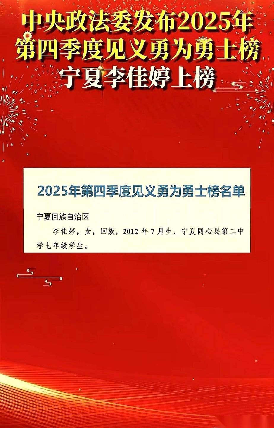“我体重轻,我下去救。” 就这七个字,我愣是看了好几遍。 一个13岁的宁夏小姑娘,在冰冷的河边,对着一个掉进冰窟窿的孩子,她脱口而出的竟然是这句话。 这背后是什么? 不是一腔热血的冲动,是一种近乎本能的、带着脑子的善良。她甚至在一瞬间就算计好了,我小,我轻,我去最合适。 真的,这才是最震撼我的地方。 救完人,自己也差点搭进去,被拉上来后呢? 人家小姑娘一声不吭,默默就走了。 就好像是出门顺手扶了下被风吹倒的自行车一样平常。 后来,后来全网都在找她,人民日报点赞,当地给了见义勇为,现在,国家给了荣誉,全国一共就50个。 这排面,够大了吧。 但说句心里话,我觉得所有这些荣誉加起来,都比不上她当初那份纯粹。 我们总说要教孩子善良,怎么教? 不是说教,不是讲道理,是让孩子看到,一个13岁的姐姐,在那个冰冷的冬天,是怎么用自己小小的身子,撑起了一个大写的“人”字。 这才是我们该追的“星”,这才是最牛的榜样。