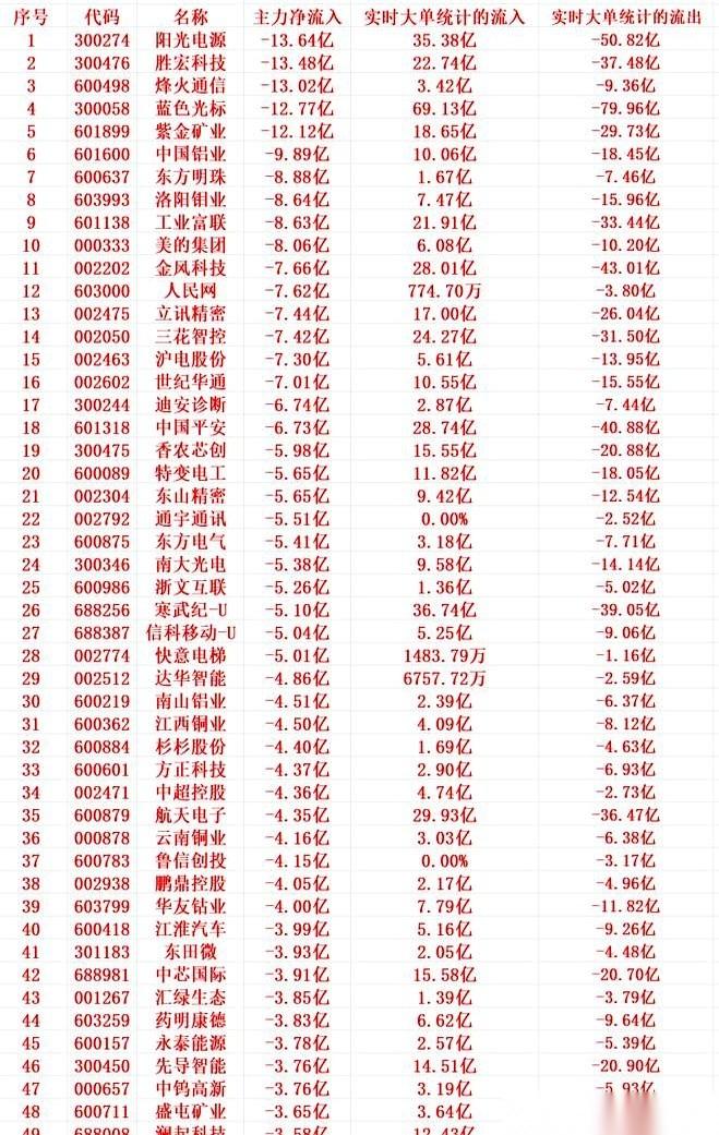 收盘前那半小时,简直就是一场大逃杀。 门一关,跑得最快的,永远是那些所谓的“主力”。 阳光电源,-13个亿。 胜宏科技,-13个亿。 烽火通信,-13个亿。 就这么短短30分钟,真金白银跟瀑布似的往外流。这是啥概念?就是别人还在犹豫要不要补仓的时候,人家的卖出键都快按冒烟了。 你以为的风平浪静,水面之下,其实是人家给你留下的一个撤退的背影。 最骚的是蓝色光标,一边哗哗地买进来69个亿,制造繁荣假象,一边悄悄地、更狠地,砸出去快80个亿。 这操作,什么叫拉高出货,这简直是教科书级别的表演。 我每次看到这种数据,都不禁会想: 他们到底看到了什么我们不知道的? 还是单纯的年底结账,关门放狗,落袋为安? 别信那些K线图画出来的花好月圆了。 想看清一个人的真面目,别看他说了什么,要看他最后做了什么。 想看清一只票的底牌,也别听消息满天飞,就看看收盘前那半小时,那些最聪明的钱,到底是在往里冲,还是在夺路而逃。 那才是最真实的人性。 也是最真实的赌场。