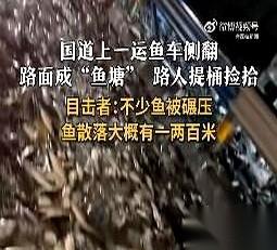 国道上黑黢黢的,一辆大货车四脚朝天躺在路中间,银白色的鱼混着水,铺了上百米。 车轮还在不甘心地空转,可骑着电瓶车、拎着红蓝塑料桶的人,已经从四面八方围了过来。没人先问司机怎么样,第一个弯下腰的,是去捞脚边那条活蹦乱跳的鱼。 一个,两个,越来越多的人加入进来。有人干脆把外套一脱,兜着就往里装。车灯晃过,能看到柏油路上一片片鱼鳞的反光,和一张张被兴奋照亮的脸。现场乱糟糟的,全是塑料桶磕碰地面的声音,和鱼尾拍打水花的“啪啪”声。 司机就站在几米外,外套上全是泥。他就这么看着,看着自己的货物被一双手、又一双手,装进各种各样的桶里带走。他手机攥在手里,屏幕亮着,但一个电话都没拨出去,嘴唇动了动,最后只化成了一口白气,飘散在冷空气里。 有路过的人拍下这一幕,车旁,捡鱼的人一拨接一拨,司机站在那,像个被按了暂停键的雕塑。 这可能就是马路上不成文的规矩:只要东西掉了,好像就不再属于任何人,而是属于第一个弯腰的人。