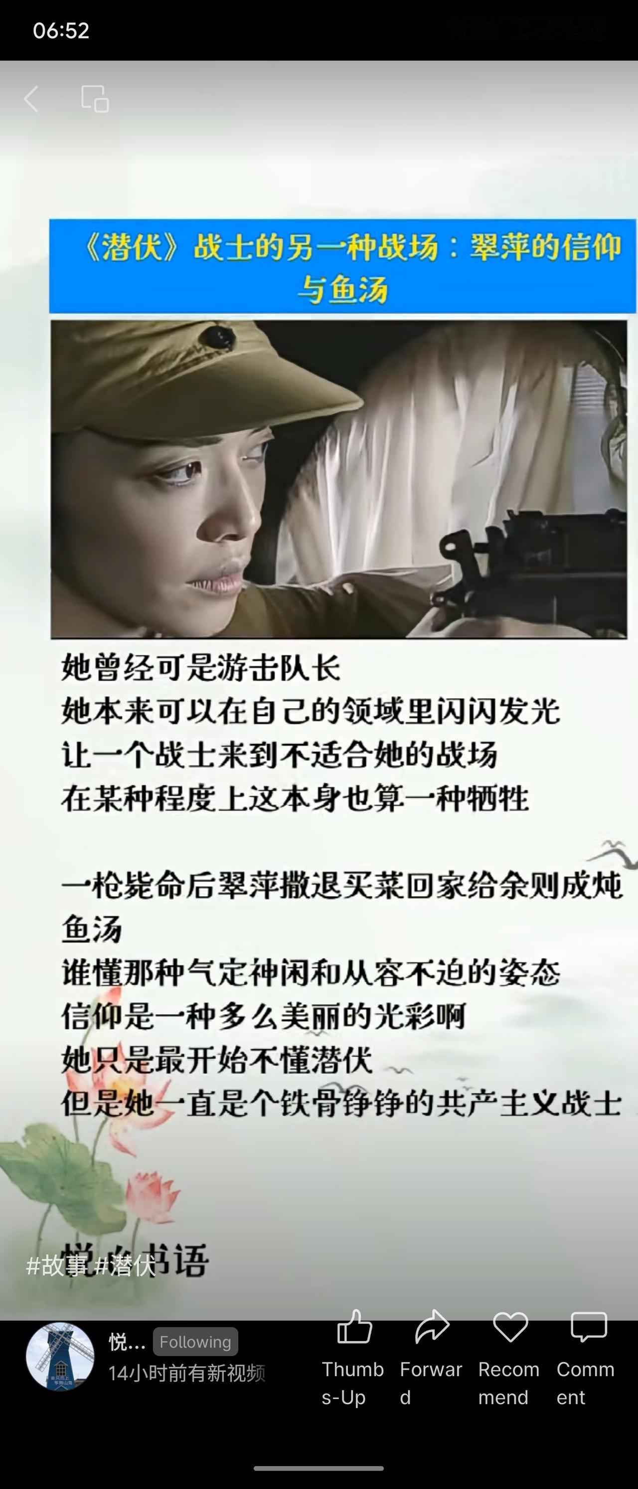 翠萍原为游击队长,转入不适合她的潜伏战线本就是一种牺牲。她在完成任务后,从容返家炖煮鱼汤,展现出信仰赋予的坚定与从容。她始终是一位铁骨铮铮的共产主义战士。