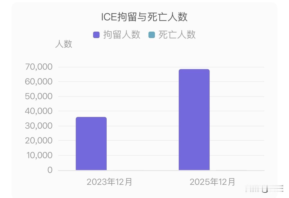 法新社报道,美国移民及海关执法局(ICE)日前发布的文告显示,截至去年12月底,当局拘留了超过6万8000名成年人,高于2023年12月的约3万6000人。 2025年成为美国移民与海关执法局(ICE)近20年来最致命的一年。根据官方数据,全年共有32名被拘留移民死亡,创下自2004年以来的最高纪录。 2025年1月:洪都拉斯人吉列尔莫·吉列恩在佛罗里达州医院死亡,死前曾报告昏厥症状 2025年4月:海地公民玛丽·安吉·布莱斯在佛罗里达州拘留中心死亡,家属称曾遭拒医 2025年12月:单月6人死亡创纪录,包括保加利亚、厄立特里亚等国移民。 美国非法移民 美国移民政策 美驱逐移民 美国移民门槛 美国移民审查 美国移民局执法 美国移民法