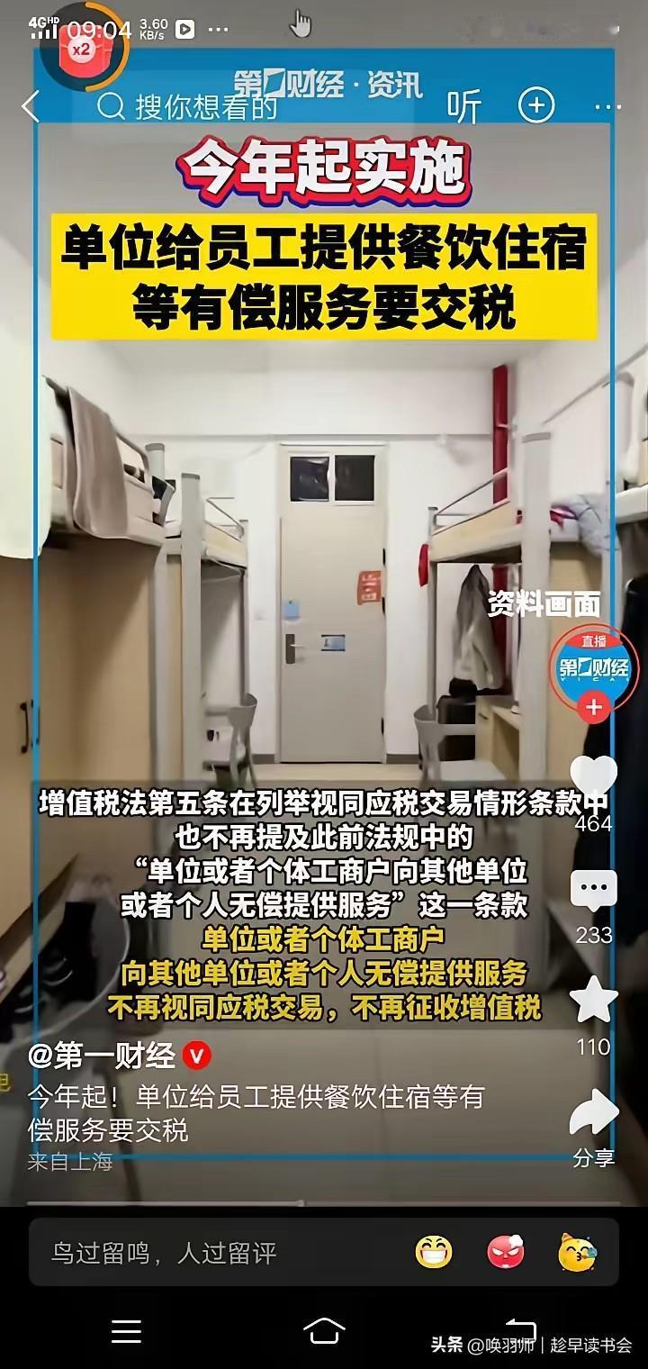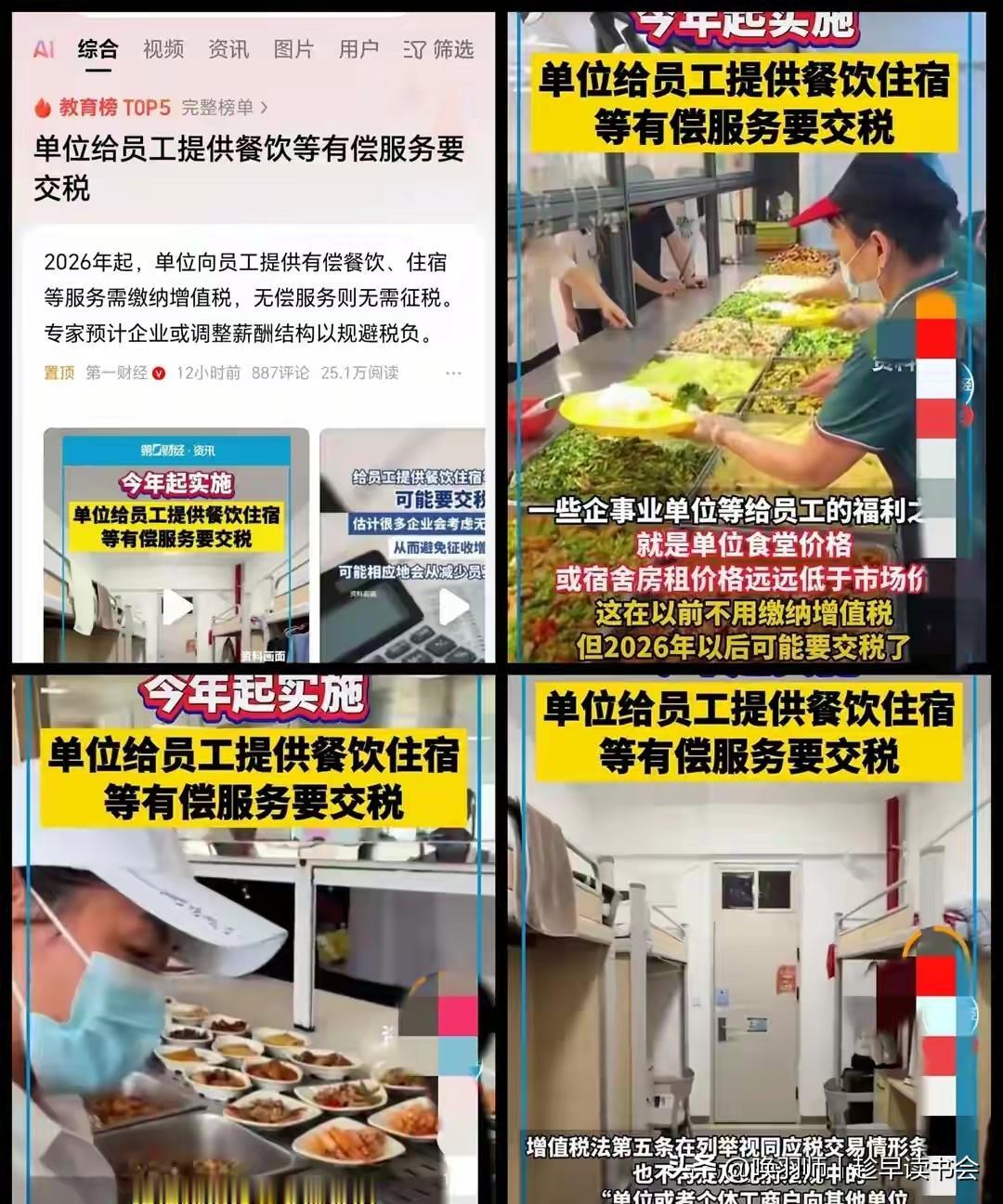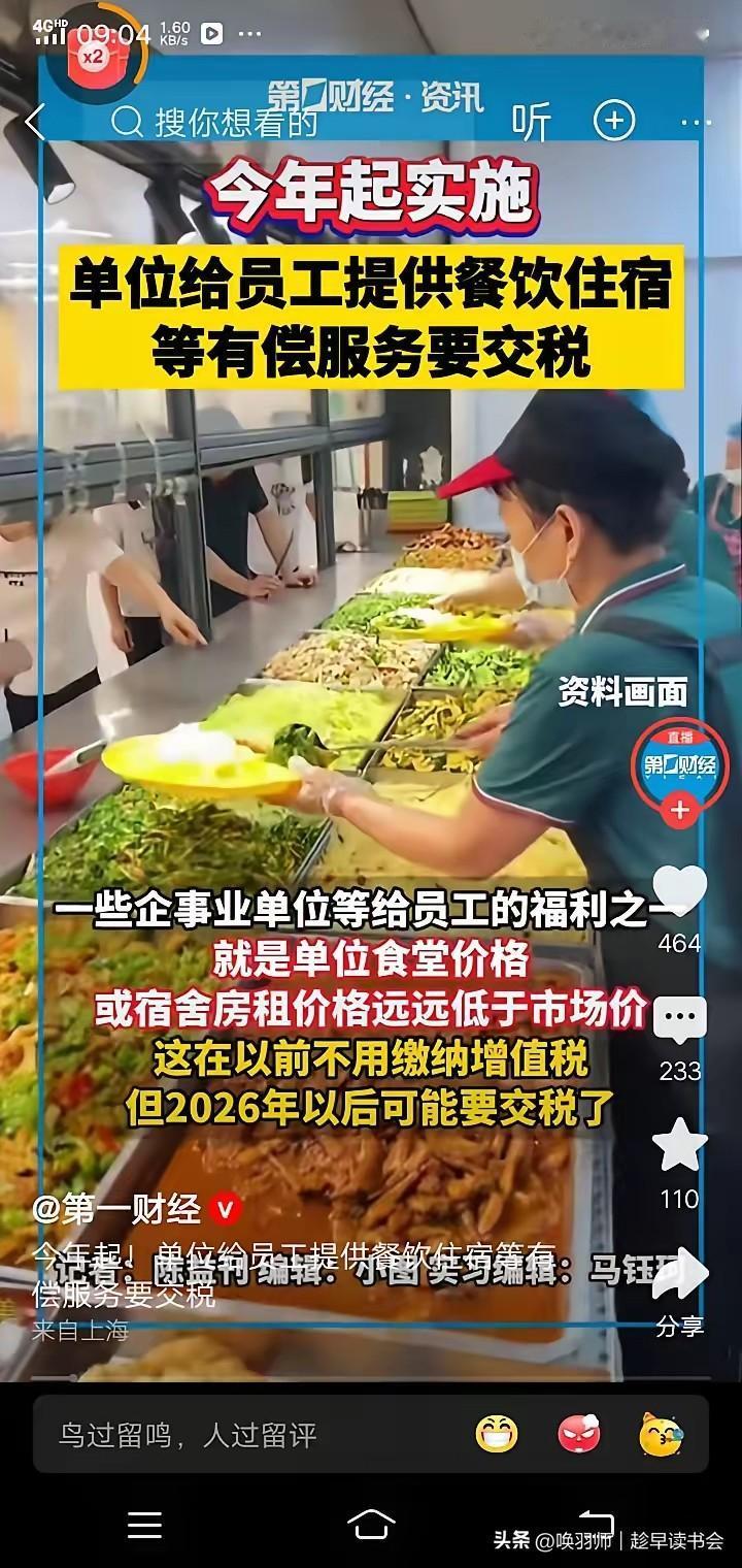 福利又缩水?企业低价宿舍食堂要交税了!2026年食堂宿舍要涨价? 2026年起,企业以任何价格向员工提供宿舍、工作餐等有偿服务,均需缴纳增值税(税率6%或3%);完全免费则无需缴税。 直接影响:企业为避税,可能取消福利或改为“免费福利+降薪” 组合,直接增加员工生活成本,尤其冲击基层员工与职场新人。 维权关键:立即核查劳动合同。若福利待遇写入合同,企业单方面取消即属违约,劳动者可依法维权。口头福利需收集工资条、缴费记录等证据。 趋势展望:政策意在税收规范,但执行中需防止伤害基本民生。理想结果是倒逼企业创新福利模式(如合作集采、补贴化),在合规同时保留人才竞争力,而非简单将成本转移给劳动者。公司发放的福利费是否需要缴纳个税 食堂花销 食堂成本分析 校园餐经费 学生餐厅收费 学生餐补助政策 食堂新规 校园食堂经费 餐饮住宿费 大学食堂档口应该如何定价? 餐饮费最高标准 食堂成本控制 餐饮费 食堂增值税 食堂进项抵扣 高校食堂涨价 吃饭税