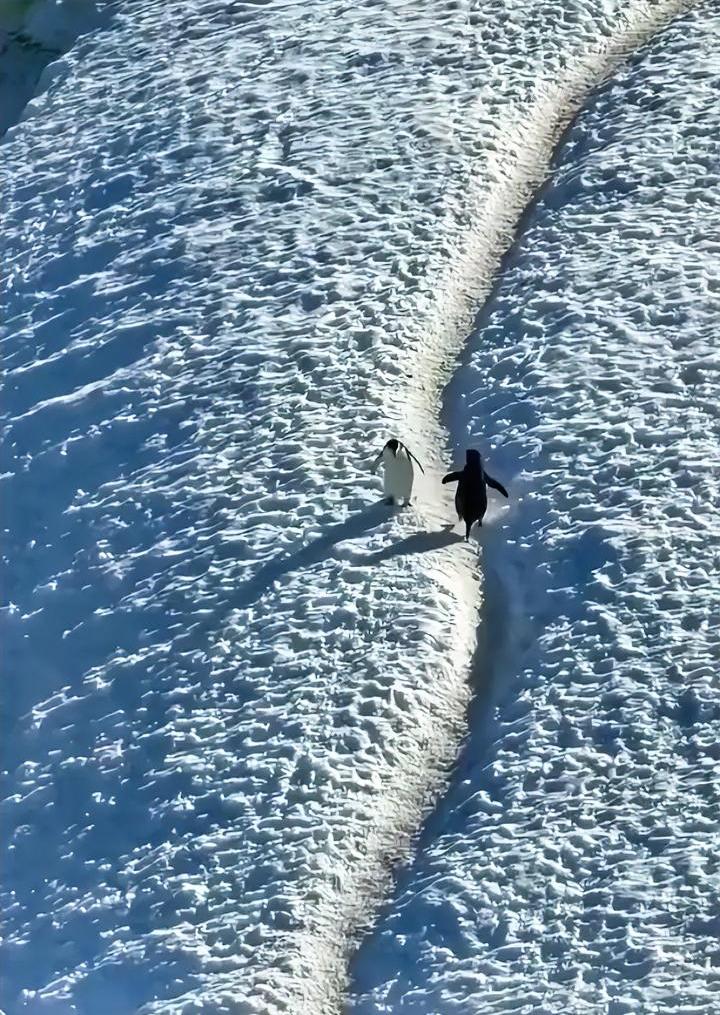 被两只企鹅刷屏了 一条小路上面对面走来两只企鹅 在相遇时 走下坡路的企鹅主动避让 走上坡路的企鹅降速走过 这一幕让人类一败涂地 多少人出行时为了赌气而互不相让,进而影响公共秩序。 两只企鹅却懂得礼让,真是让人汗颜。