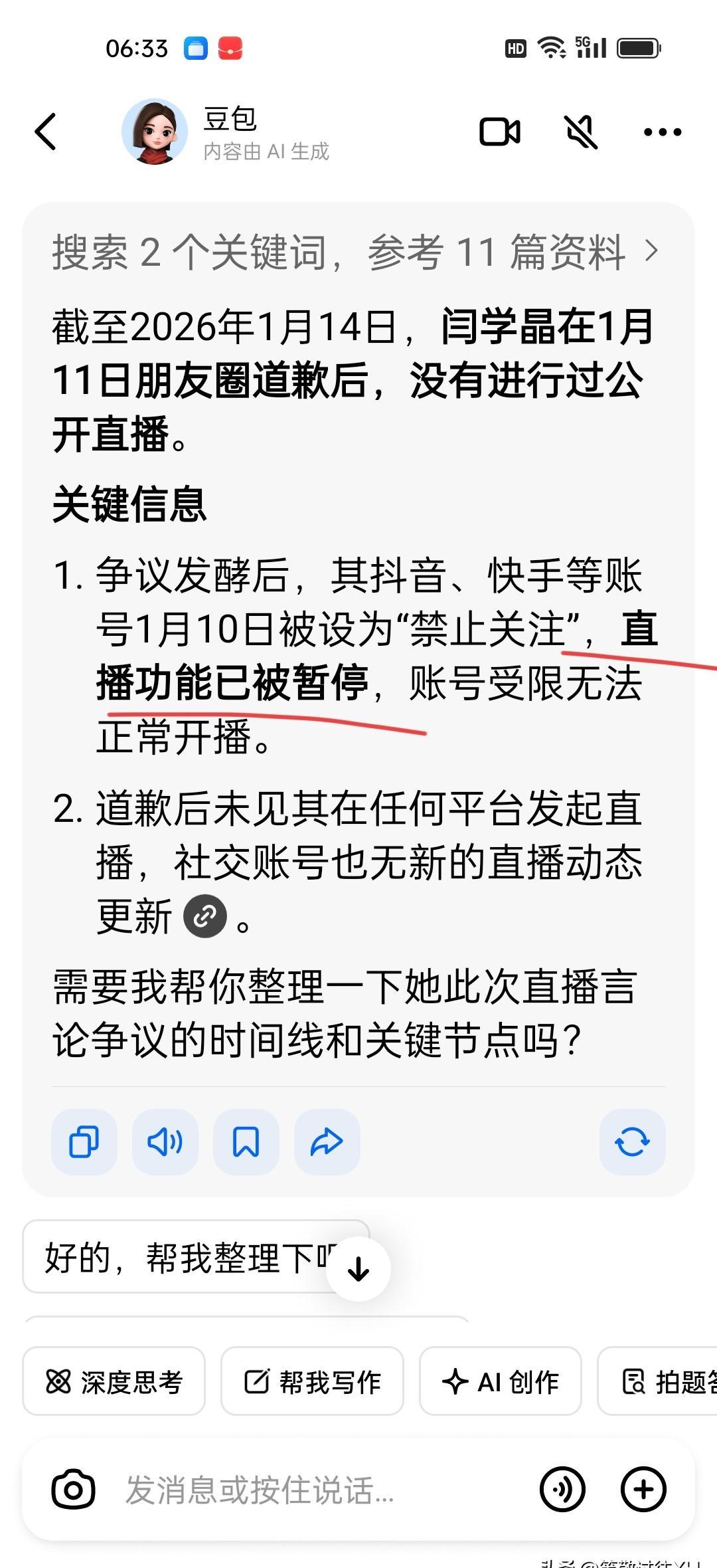 闫学晶刚道歉,转头就狂卖20万口铁锅? 这剧本写得也太假了。 我得说,这简直是把网友当傻子耍。 一边是她1月11日公开道歉,一边是账号早在1月10日就被禁止关注,直播都停了。 请问,一个没法直播的人,是怎么在镜头前声嘶力竭卖锅的? 靠意念吗? 这根本不是个例。2023年第四季度,光是主流平台就处置了12.8万个违规账号,其中15%都在编造名人八卦。 造谣的成本太低了,一张嘴、一个AI,就能凭空捏造出几百万的利润。 这些谣言就像病毒,不,它们就是精神鸦片,廉价又刺激,喂饱了流量,却毒害了真相。 当谎言比真相更能赚钱时,我们又该相信谁?