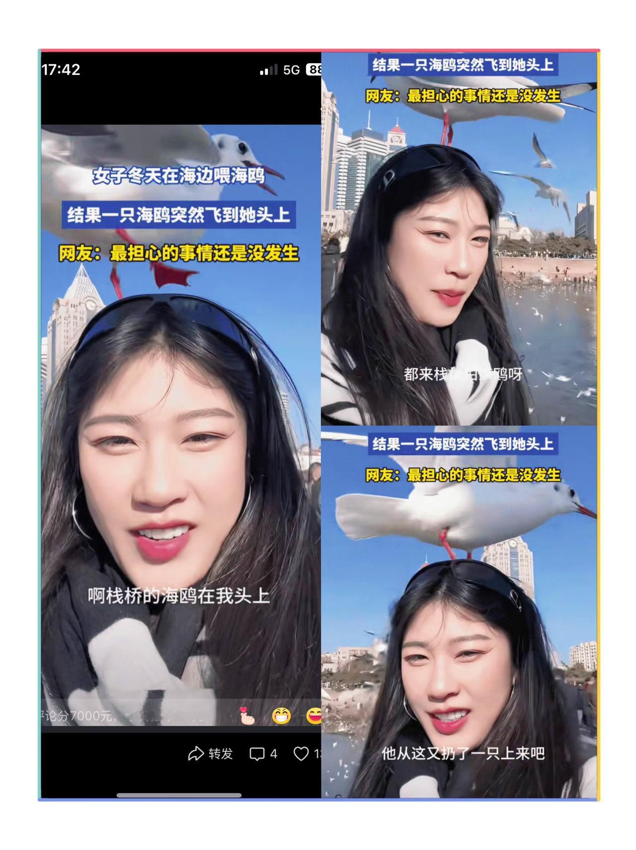 “最担心的事情还是没发生!”山东,一名女子去海边看海鸥,突然一只海鸥飞到女子的头上停了下来,本以为女子会吓的赶紧把海鸥给赶下来,没成想,女子不但没驱赶,并且还让朋友赶紧拿手机帮她记录这一刻。 冬日的山东,是海鸥越冬的重要栖息地,每天都有不少市民和游客前来观鸟,女子也是其中之一。 和其他游客不同,她没有带着“打卡拍照”的急切,只是静静地站在沙滩边缘,看着海鸥在海面上盘旋觅食。 变故发生得很突然,一只体型中等的海鸥,没有飞向投喂食物的人群,反而振翅飞向了静止站立的女子,转瞬之间就稳稳停在了她的头顶。 周围的游客瞬间安静下来,不少人下意识地停下了手中的动作,在常见的生活经验里,野生动物的突然靠近往往伴随着“风险”。 可能会被啄伤,也可能会留下排泄物,大多数人的第一反应都是挥手驱赶,女子身边的同伴也忍不住屏住了呼吸,下意识地往前凑了半步,想随时应对可能出现的意外。 但女子始终没有动,她没有抬头张望,也没有做出任何驱赶的动作,甚至刻意放缓了呼吸的节奏。 她能清晰地感受到头顶的轻微压迫感,海鸥的爪子轻轻勾住发丝,翅膀扇动时带起的风,裹着海风特有的咸湿气息拂过脸颊。 这种近距离接触带来的不是恐惧,而是一种难以言喻的平静,仿佛自己也成了这片沙滩的一部分,与眼前的生灵共享这片天地。 几秒的停顿后,女子轻轻侧了侧头,用眼神示意同伴记录,镜头里,她的表情平和,没有夸张的惊喜,只有一种对生命的温柔接纳。 这只海鸥在她头顶停留了近半分钟,期间没有任何攻击性动作,也没有留下让人尴尬的“痕迹”。 随后,它仿佛完成了一场短暂的“拜访”,扑棱着翅膀飞向海面,融入了远处的鸥群,临走时还发出了一声清脆的鸣叫,像是在告别。 这段视频被发布到网络后,评论区里除了羡慕,更多的是对“不驱赶”的认可,有人说,“换做是我,可能第一时间就躲开了”;也有人感慨,“正是因为她没驱赶,海鸥才敢停留这么久”。 很少有人注意到,这场“偶然”的邂逅,背后藏着当地多年的生态积累。 严禁在栖息地范围内乱扔垃圾、违规捕捞,不仅如此,当地志愿者还组建了“海鸥养护小组”,每天在沙滩巡逻,劝阻不文明观鸟行为,普及鸟类保护知识。 海边的这只海鸥,落在的不仅是一名女子的头顶,更是落在了“生态友好”的土壤上。 女子的“不驱赶”,不是盲目胆大,而是对生态保护成果的信任,海鸥的“敢停留”,不是偶然冒险,而是对人类善意的认可。 这场半分钟的邂逅,最终定格成了“意外的邂逅:半分钟的信任与温柔”,它告诉我们,人与自然的和谐,从来不是单方面的“施舍”,而是双向的“信任”。 当我们主动为野生动物留出空间、守护它们的栖息地,它们自然会用最温柔的方式,回应这份善意。 如今,海边的风依旧吹拂,海鸥的鸣叫声依旧清脆。 那个被海鸥“选中”的女子,用一个平静的姿态,为我们诠释了最朴素的生态智慧:尊重每一个生命,就是尊重我们自己生存的世界。