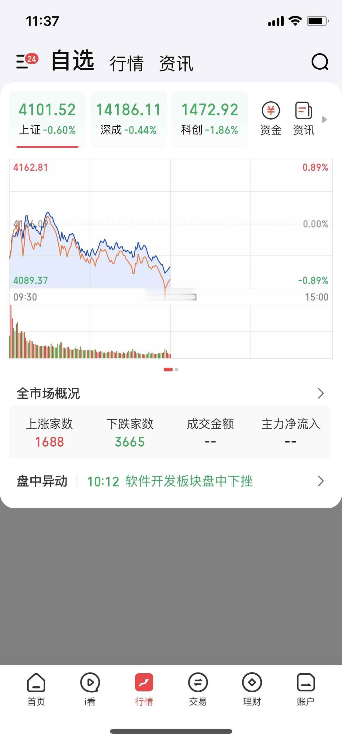 1月15日午盘简单分享,截止午盘3665家下跌,指数收在4101,今天全场一片哀嚎,我承认早盘策略预判相反,既没有新王登基也没有旧王反攻,也没有双主线,今天大盘全A杀,尤其是最近上涨多的板块,商业航天和Al应用。问题来了怎么操作,我会拿着静静地等,主线是不会套人的,我左手商业航天,右手Al应用,一旦反弹最先回本甚至盈利就是买主线买核心的人。如果这个时候走了甚至买了其他杂毛票套几个月甚至一整年都有可能。商业航天的历史任务才刚刚开始,大逻辑没有走完,耐心等待[泣不成声]