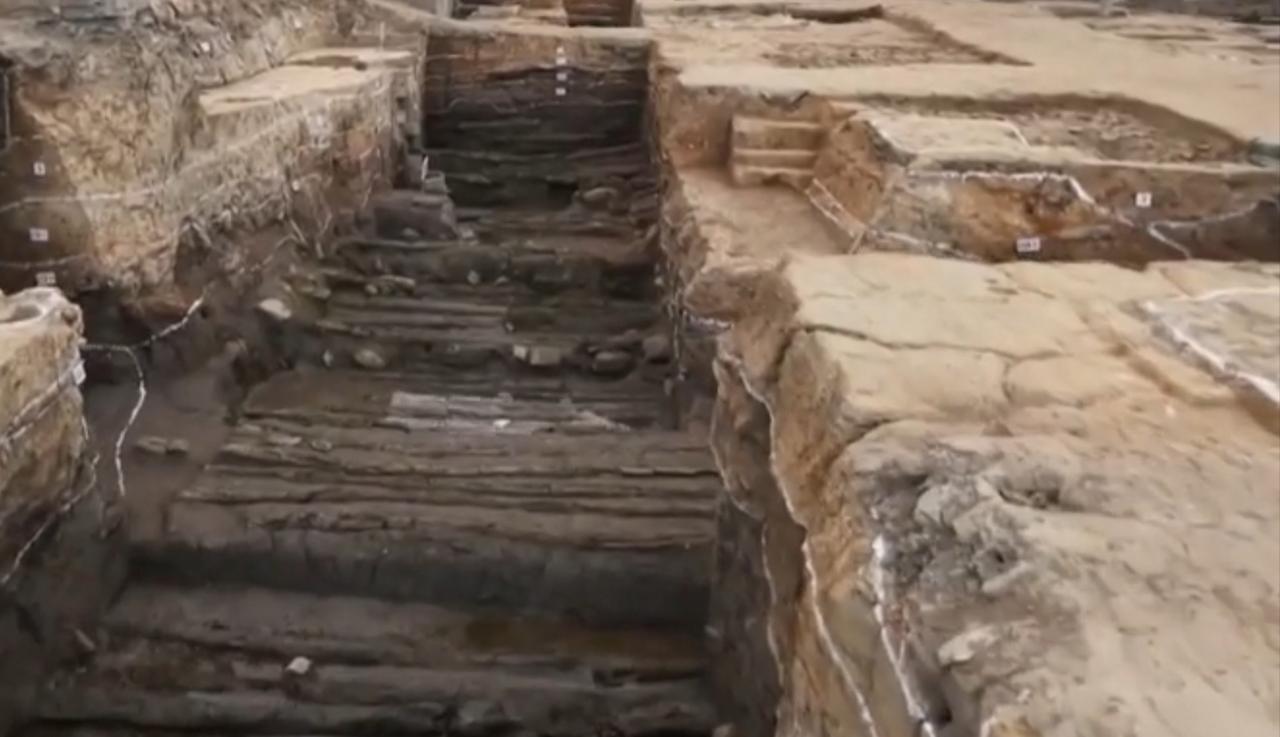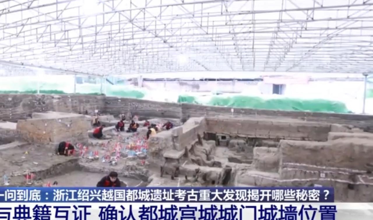 浙江绍兴越國都城遺址考古取得重大突破,考古人员结合典籍考证,精准确认了都城宫城的城门与城墙位置。画面中能看到考古现场的发掘遗迹,还有经夯打而成的坚硬地面等关键遗存。绍兴市文物考古研究所专家介绍了遗址细节,此次发现为还原越国都城格局、研究吴越文化提供了珍贵的实物佐证。