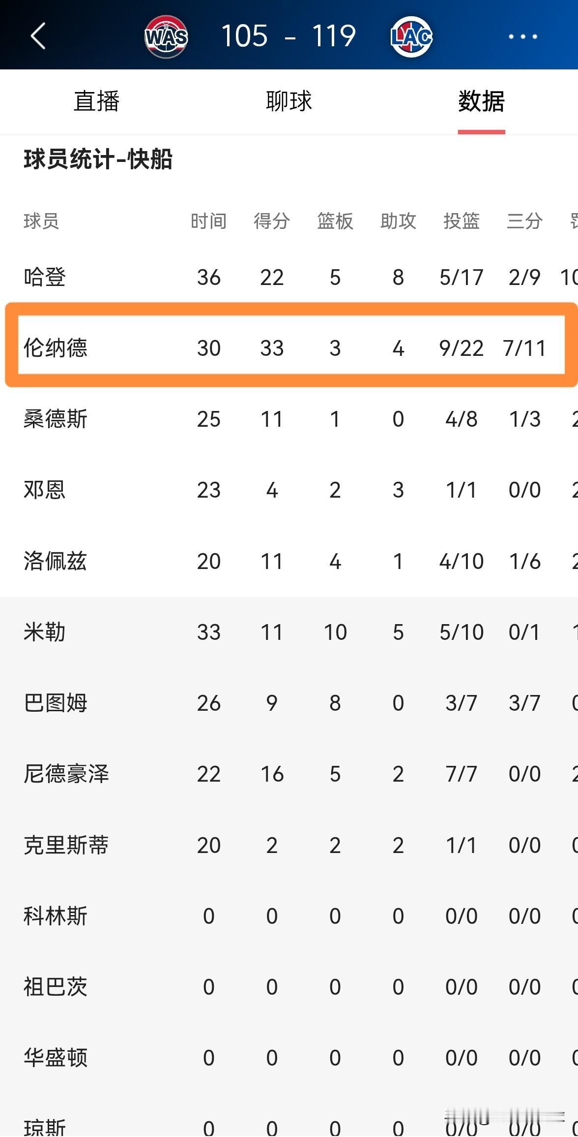 快船当家球星伦纳德不愧是球队的三分之神!在今天快船主场以119:105击败奇才的比赛中,伦纳德在三分线外大发神威命中了7记三分球。 全场比赛下来,伦纳德首发出战30分钟,投篮22中9,其中三分球11中7、罚球8中8轰下33分,还有3篮板4助攻4抢断,他的场上正负值为+7。 本场比赛伦纳德在三分线外如有神助,堪称球队的三分之神。