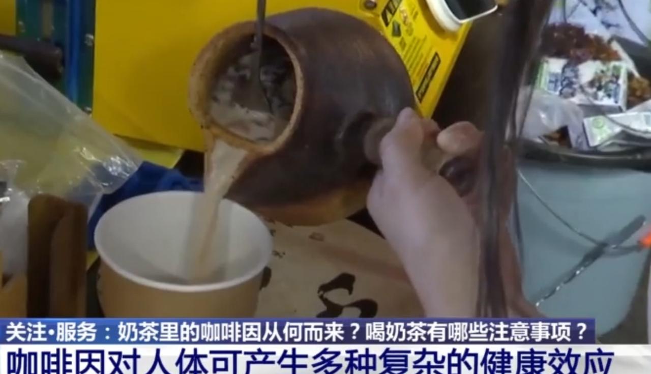 这段新闻聚焦奶茶中的咖啡因问题展开探讨,画面呈现了茶饮店、咖啡店的消费场景,以及奶茶制作、咖啡豆陈列等画面。报道指出奶茶里的咖啡因来源是核心关注点,且咖啡因会对人体产生多种复杂健康效应,同时也将解答饮用奶茶的相关注意事项,为消费者提供科学的饮用参考。