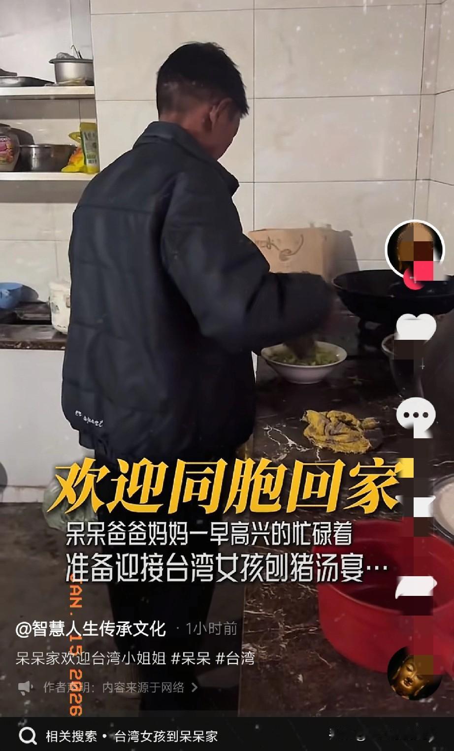 今天是个令人振奋的日子, 因为呆呆家小保安又更新视频了, 看呆呆的爸爸妈妈都忙碌了起来,原来他们在准备迎接同胞回家,不光是迎接,还有热情的招待。 吃过刨煮汤,喝过热气腾腾的汤,吃过呆呆妈妈亲手做的腊肉,这都是国台办说有同胞去呆呆家吃刨煮汤。 已经不是单纯的一家人的事情,而是上升到更高的层面了。 相信当女孩们喝到热汤时,咬到腊肉时,一定能感受到这里是温暖的家,两岸同胞团圆的画面,什么时候能看到呢?