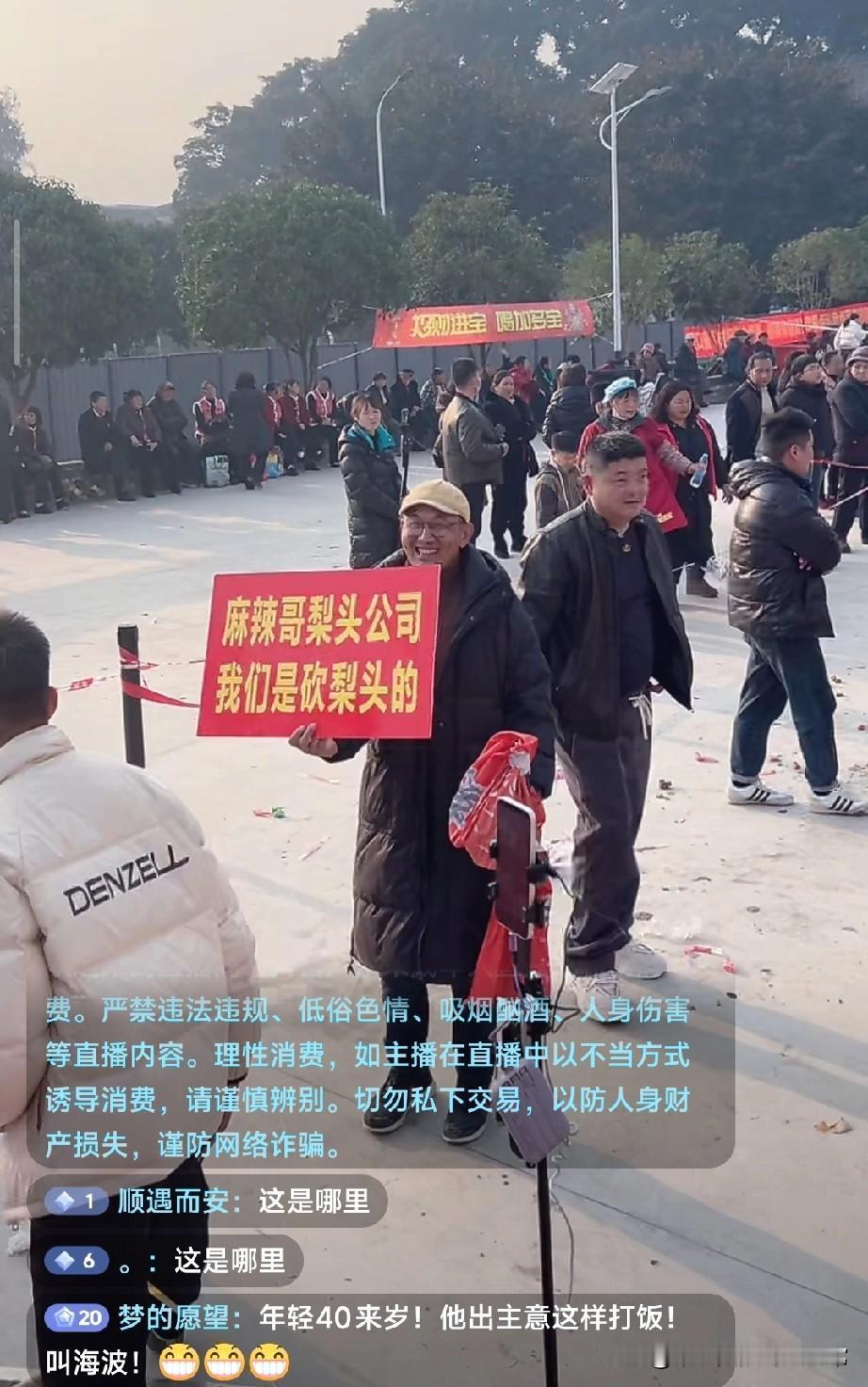 这场乡村宴席直播火了,千人扎堆太热闹 刷到个离谱又有趣的直播!某地乡村办宴席,现场乌泱泱挤了上千人,圆桌摆了一溜,大家端着红碗排队打饭,烟火气直接拉满。更吸睛的是有人举着红牌,写着“麻辣哥梨头公司 我们是砍梨头的”,瞬间把弹幕都逗乐了。 直播里满屏都是问“这是哪里”的评论,还有网友调侃“梨头公司CEO都没去”,现场人挤人的画面,看着比赶大集还热闹。主播的直播间点赞数也蹭蹭涨,1.9万的本场点赞,足见大家对这种乡村热闹场面的好奇。 只是这么多人扎堆,现场秩序全靠大家自觉,看着既热闹又让人捏把汗。 结尾争议点:大家觉得这种乡村宴席开直播引千人围观,是接地气的乡村文化展示,还是容易引发安全隐患的跟风凑热闹