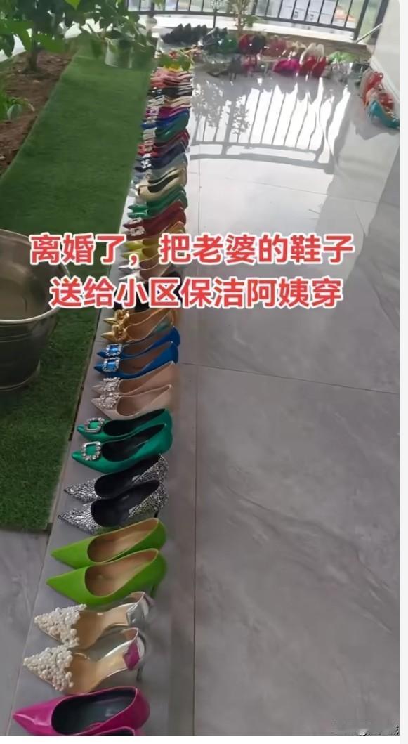 离婚了把老婆的鞋子送给小区的保洁阿姨穿,不知道她们会要吗?全部都是清一色各种款式的高跟鞋。 看到如此多的鞋子,真是让人既羡慕又嫉妒,这肯定是贵妇级别的女人才能拥有的待遇吧,普通家庭的女人会有这么多的高跟鞋吗?而且各种款式各种颜色的高跟鞋都快能开个鞋店了,送人不知道会有人要吗?如果挂在二手平台上是不是还能卖几个钱?