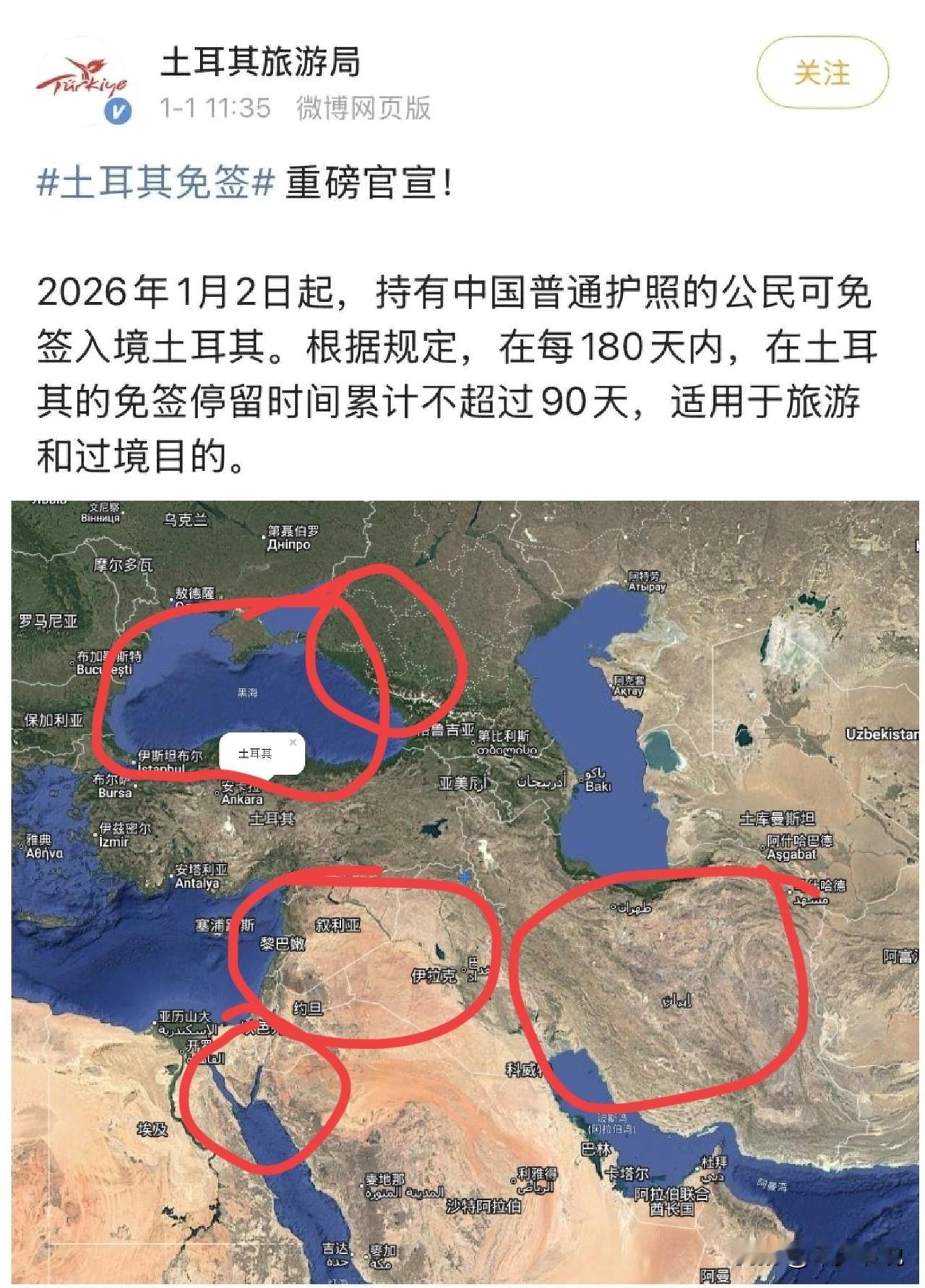 土耳其周边全是战争,暂时不建议去土耳其“浪漫” 近日土耳其旅游局通过社交平台宣布“1月2日起持有中国普通护照可免签入境土耳其”这就让很多人起了去“浪漫土耳其,浪漫一下”的心思。 但是最近中东真的很忙,无论是土耳其边境的黑海成为俄乌袭击商船的“主战场”,还是美国和以色列正准备对伊朗发动战争。还有一个乱的不能再乱的叙利亚。 我的建议是暂时不要去土耳其,等时局平稳了再去土耳其“浪漫”
