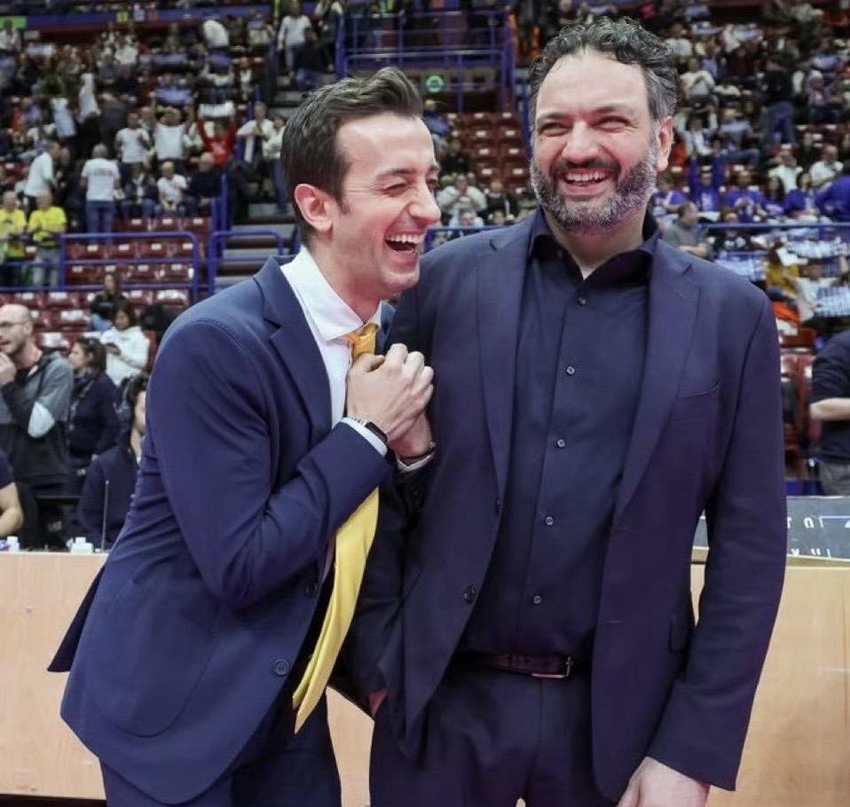 两位顶级女排教练间的对话? 桑塔雷利捂嘴笑:你不会想挖我们队朱婷吧? 拉瓦里尼瞥一眼:嘿嘿,你说呢! 桑塔雷利:好吧,那你让我把埃格努挖过来! 拉瓦里尼:想得美! 两人同时大笑!…… 从两人的表情来推测,仅供娱乐!