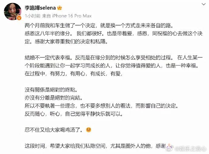 李施嬅车崇健分手最近娱乐圈又有一则感情消息引起了大家的关注,那就是李施嬅和车崇健分手啦!这对曾经被很多人看好的情侣,如今分道扬镳,着实让人有些唏嘘。李施嬅,大家肯定不陌生。她在演艺界那可是有着不少代表作,演技精湛,颜值在线,塑造了一个又一个令人难忘的角色。而车崇健,也是有着自己独特魅力的人物。他们当初在一起的时候,那甜蜜的模样不知道让多少人羡慕。两人时不时在社交平台上秀个恩爱,出席活动时也是手牵手,仿佛向全世界宣告他们的爱情有多美好。爱情,就像一场奇妙的旅程。有时候,我们以为能和对方一直走下去,可走着走着,就发现彼此的方向渐渐不同了。有专家说过,在一段感情中,双方的成长速度、价值观等因素都可能影响感情的走向。也许李施嬅和车崇健就是在相处的过程中,发现彼此在某些方面出现了分歧。就像两条原本平行的线,慢慢有了夹角,最终走向了不同的方向。在娱乐圈,分分合合似乎已经是常事。据不完全统计,每年娱乐圈公布的情侣分手消息就有几十起。但每一次分手,背后都有着当事人的喜怒哀乐。对于李施嬅和车崇健来说,这一次分手可能是他们人生中的一个重要转折。也许他们会在未来遇到更适合自己的人,开启新的生活篇章。其实,从他们的分手事件中,我们也能得到一些启示。在爱情里,我们不能仅仅只看到表面的甜蜜,更要关注彼此的内心需求和成长。就像养花一样,不仅要浇水施肥,还要了解花的习性,才能让它茁壮成长。李施嬅车崇健的分手,虽然让人有些遗憾,但这也是他们人生的一种选择。爱情本就充满了不确定性,我们应该尊重他们的决定。希望他们都能在未来的日子里,找到属于自己的幸福。也希望我们每个人在面对爱情的时候,都能更加理智,更加珍惜身边的人。毕竟,爱情不易,且行且珍惜呀!不知道大家对于李施嬅和车崇健分手这件事有什么看法呢?欢迎在评论区留言讨论哦!