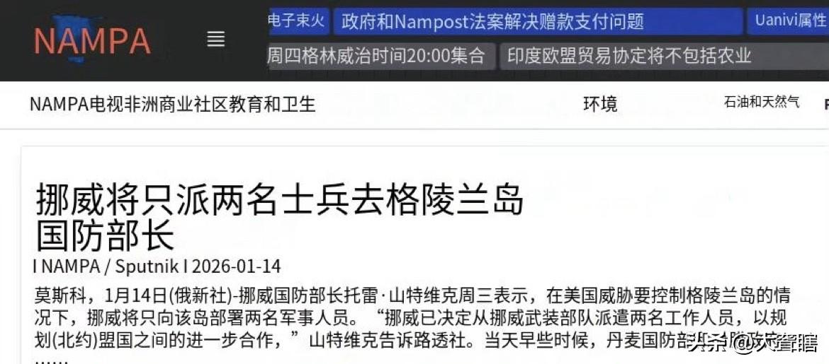 支援丹麦,挪威宣布派遣2名军官前往格陵兰岛! 据外媒消息,挪威国防部长托雷•山特维克近日表示,应丹麦要求,挪威武装部队决定抽调2名军官前往格陵兰岛,负责北极防务任务。 据悉,德国和法国也分别派遣了数10名军人前往丹麦,而瑞典已有数千名军官团队抵达。