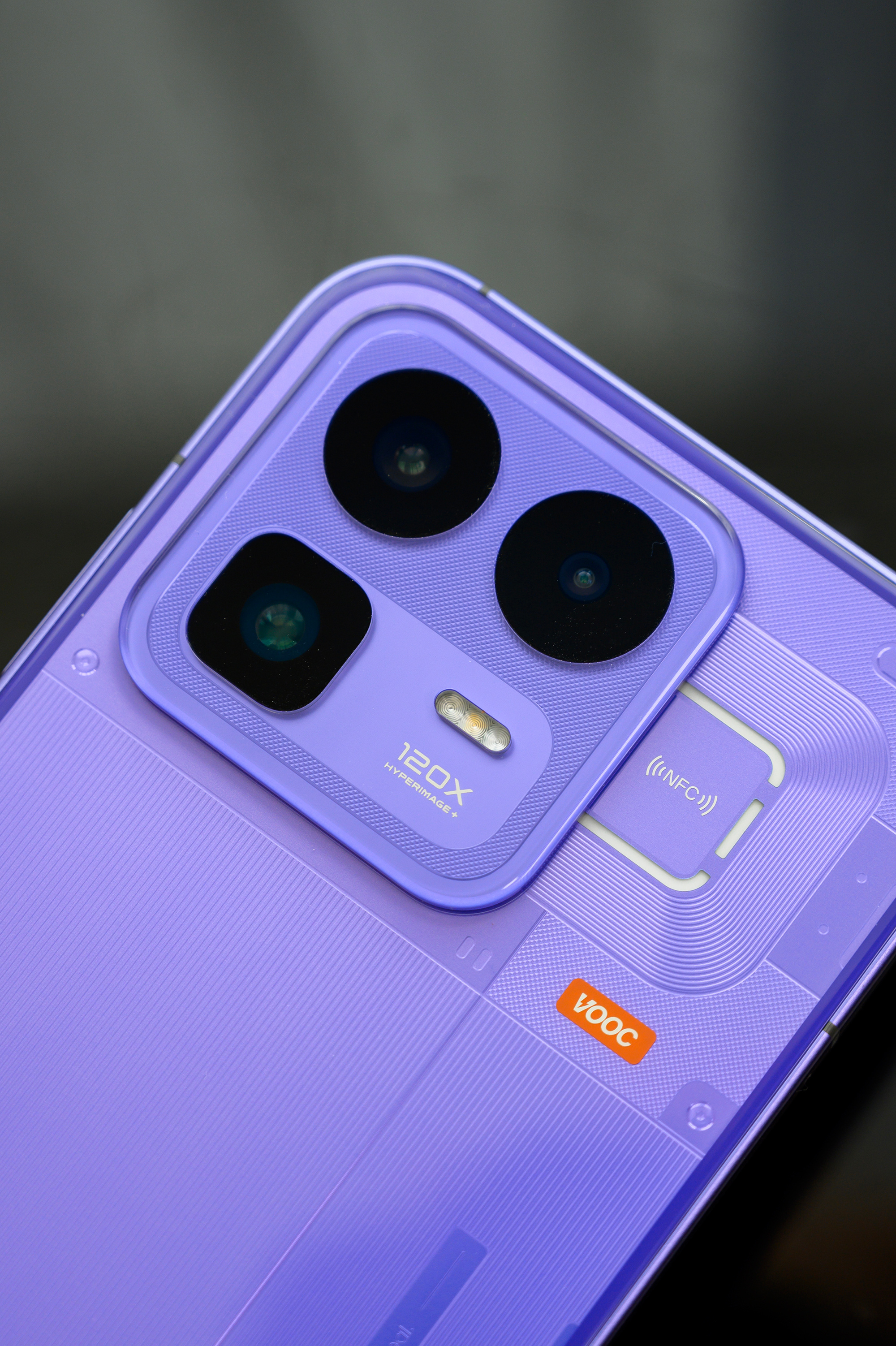 先来给大家看看realme真我 Neo8的外观,“觉醒紫”的配色相当有感,搭配背后的这个RGB觉醒光环,酷炫、有个性。加上背部的各种细节,你喜欢吗?
