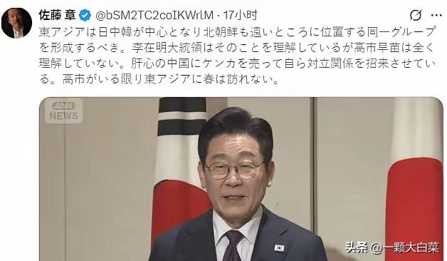 送走李在明后,高市早苗还没回味完这次日韩交流,她就被骂的“狗血淋头”。日本著名时政评论员佐藤章今天说:东亚地区应以中日韩三国为核心,同时将地理位置虽远但同属一个区域的朝鲜也纳入其中,共同构建区域合作框架。韩国总统李在明理解这一点,并为之付出努力。但日本首相高市早苗目光短浅,完全无法理解。只要高市这种主动挑衅邻居、招致对立关系的领导人继续执政,东亚就不会迎来和平繁荣的 “春天”。 佐藤章这番话可不是随便说说,他点破了东亚合作困局的核心病因。高市早苗满脑子想着借美日韩军事同盟给自己贴金,却忘了东亚经济命脉早就长成了你中有我、我中有你的共生体。中国连续十几年是日韩最大贸易伙伴,三国产业链就像嫁接在一起的果树——日本提供零部件,韩国负责精细加工,中国完成组装并消费,砍断任何一枝都会三败俱伤。 高市的短视在独岛问题上暴露得最彻底。她以为在国会强硬表态“竹岛是日本领土”能讨好右翼选民,结果直接引爆了韩国的民族情绪。韩国军舰在独岛海域常态化巡逻,总统府放话“用一切手段捍卫主权”,原本谈好的货币互换协议就此搁浅。这种“政治爽一时,经济痛三年”的玩法,日本企业最先受害——丰田在韩销量当月跌了三成,优衣库门店遭抵制,日韩半导体材料供应链岌岌可危。 李在明的难处像在走钢丝。他顶着国内批评声推进日韩合作,换来的却是高市在历史问题上的步步紧逼。访日时特意选在奈良东大寺会谈,用佛教文化交流示好;结果隔天高市就公开否认强征“慰安妇”事实,把韩国政府的善意踩在脚下。这种热脸贴冷屁股的遭遇,让李在明在国内被骂“亲日卖国”,支持率暴跌五个百分点。 东亚合作从来不是请客吃饭,而是精密的地缘政治手术。佐藤章设想的“中日韩+朝鲜”框架,关键要解决安全与发展两大难题。朝鲜需要安全保障与发展空间,日韩要解除安全威胁,中国追求区域稳定。这个局里高市却总想引入域外势力,结果越搅越浑——美国“印太战略”在东亚海域划出对抗线,日本被绑上战车,反而失去了调解人的中立地位。 经济账比政治口号更实在。RCEP生效后,中日韩关税减免覆盖了90%商品,青岛的跨境电商半天能收到日本药妆,苏州的工厂当天可调运韩国芯片。但高政府热衷配合美国搞芯片管制,导致日本半导体设备出口缩水25%。这种“自断财路”的决策,让丰田会长都公开抱怨:政治家不懂经济,却要让企业买单。 东北亚的春天需要共同栽培。中国推动的“中日韩自贸区”谈了11轮,东盟主导的“区域全面经济伙伴关系”已成雏形。如果高市能放下身段,把精力从参拜靖国神社转到共建供应链上,日本完全能在新能源、养老产业找到新增长点。可惜她选择用历史伤口当政治筹码,让整个地区失去十年黄金发展期。 解局之道或许在民间。中日韩大学生创业大赛办到第八届,三国年轻人合开的元宇宙公司已拿到软银投资;青岛的中日韩消费专区今年客流翻倍,福岛水产品检测标准被做成多语种手册。这些自下而上的暖流,比官方会谈更能融化坚冰。 未来的东亚要么共赢,要么共输。台海风波、朝鲜导弹、领土争议这些难题,没有哪个国家能单独解决。但若中日韩能建立危机管控机制,共享台风地震数据,联合开发非洲市场,区域稳定性将直线上升。高市若继续把宝全押在美国身上,日本可能成为大国博弈最大的牺牲品。 佐藤章的批评是警钟,敲给所有沉迷零和游戏的政客听。当德国总理能跪在波兰纪念碑前忏悔,当法国总统拥抱非洲移民时,东亚领导人还在为七十年前的战争责任扯皮。历史从不会辜负向前看的人,但永远惩罚活在过去的囚徒。 各位读者你们怎么看?欢迎在评论区讨论。