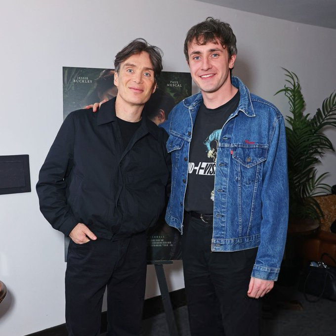 一种爱尔兰的传承。据Lauren Lyle 在她的播客中透露:基里安·墨菲特意通过西尔莎·罗南要到了保罗·麦斯卡的电话。墨菲是希望可以联系到这位爱尔兰后辈,对他近期取得的成绩表示祝贺,他还主动表示,如果麦斯卡有任何需要建议或交流的地方,自己愿意提供支持。“If he wants any advice or to chat, I’d be right up for it.” 非常暖心的基莲老师,好消息是,两人已经在《哈姆奈特》的放映活动上见到了,连对谈时,眼神里都是前辈的欣赏和关怀。