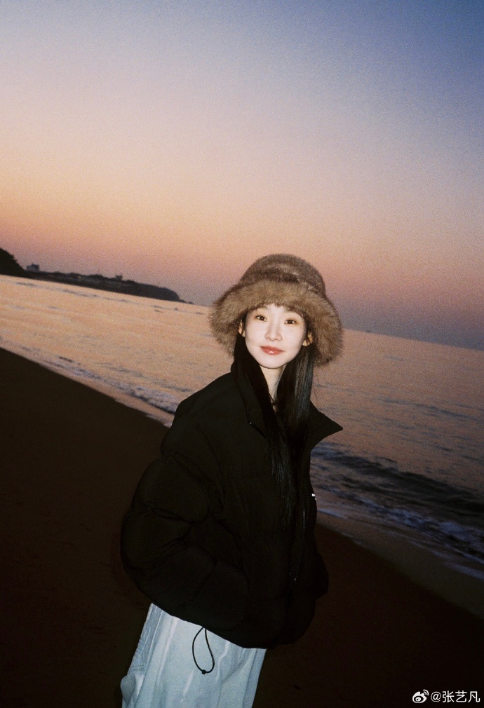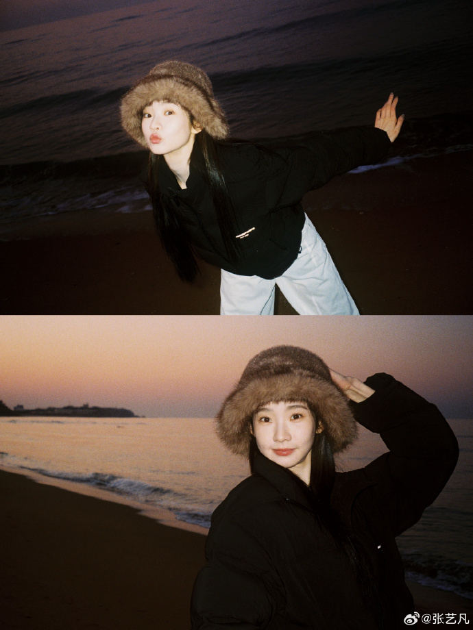 毛茸茸的张艺凡到底谁研究的毛茸茸的张艺凡到底谁研究的!海边穿黑羽绒服的张艺凡,戴