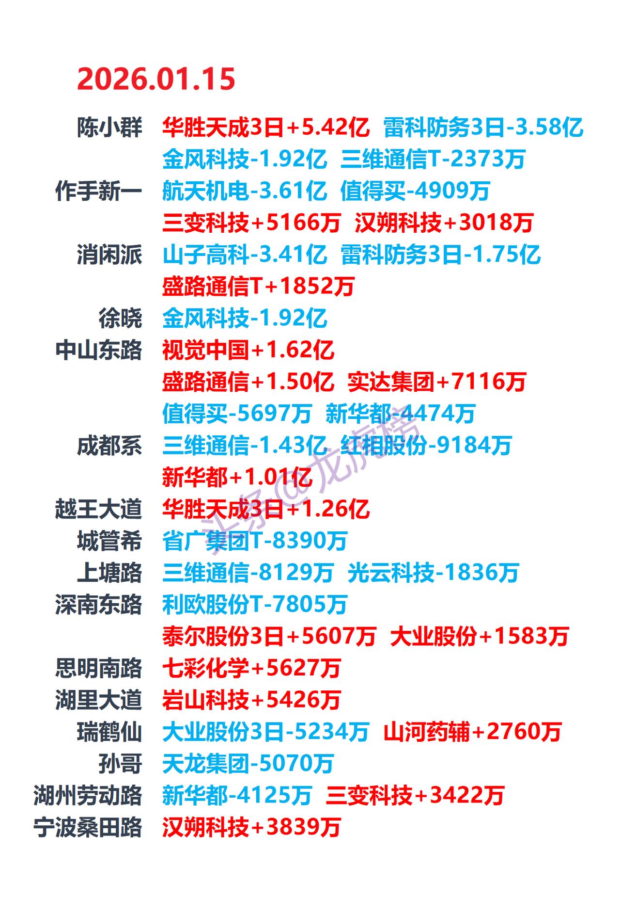 2026-1-15游资龙虎榜,游资动向