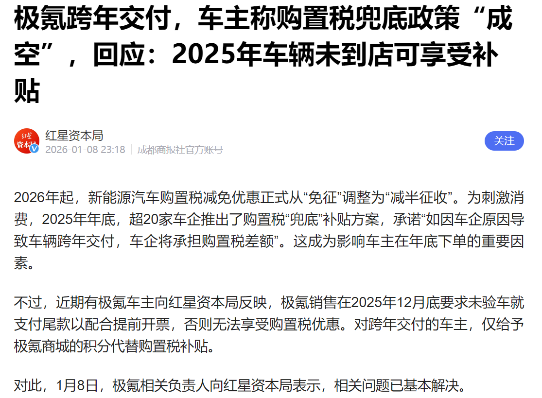 新年购置税政策变动,极氪如何兜底消费者权益?