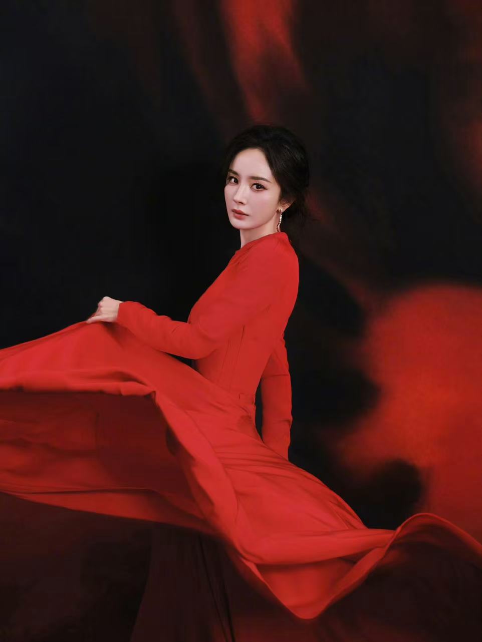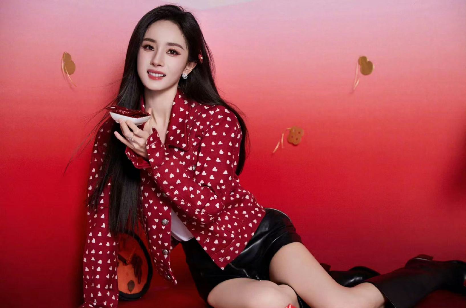 杨幂红马发卡杨幂红色爱心外套 杨幂今晚直播造型,太美了