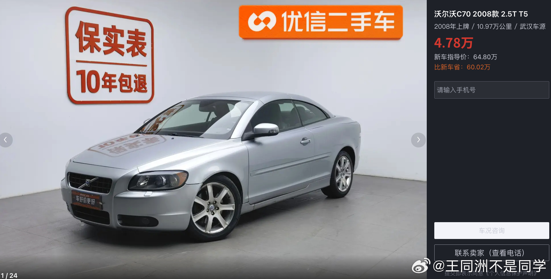 5万买牧马人啊!你敢想吗?事情是这样,前几天看到有博主说五万能买JK的撒哈拉两门牧马人,今天看了看,五万的估计卖了,但随便搜,价格确实已经在五万级别了,还能砍价,3.8L V6,除了费油都没啥毛病但对于牧马人来说,费油不是问题,快乐就完事了,开牧马人最大的痛点是跑长途不舒服,费油真不是问题,这是牧马人啊然后我又看了看真·五万二手车,选了几个好玩的,沃尔沃V60、C70,V60旅行车不稀奇了,C70可是沃尔沃里的小众车了,沃尔沃也造过跑车,还是五缸,多带劲宝马5系GT,这也属于当年的百万豪车了,现在购置税不到圆梦,我觉得后期的528会更好一点,2.0T,但就是贵点12代皇冠,这不说啥了吧,哪哪都好初代Q7后期款,放今天也没毛病,3.6L自吸,还有同时代的途锐、辉腾,都是好东西先别白日梦。买这类车吧,再准备一倍的钱去整备,或者更多,而且需要时间和精力,一直捣腾。现在买好玩二手车还是挺好,燃油车是真便宜了