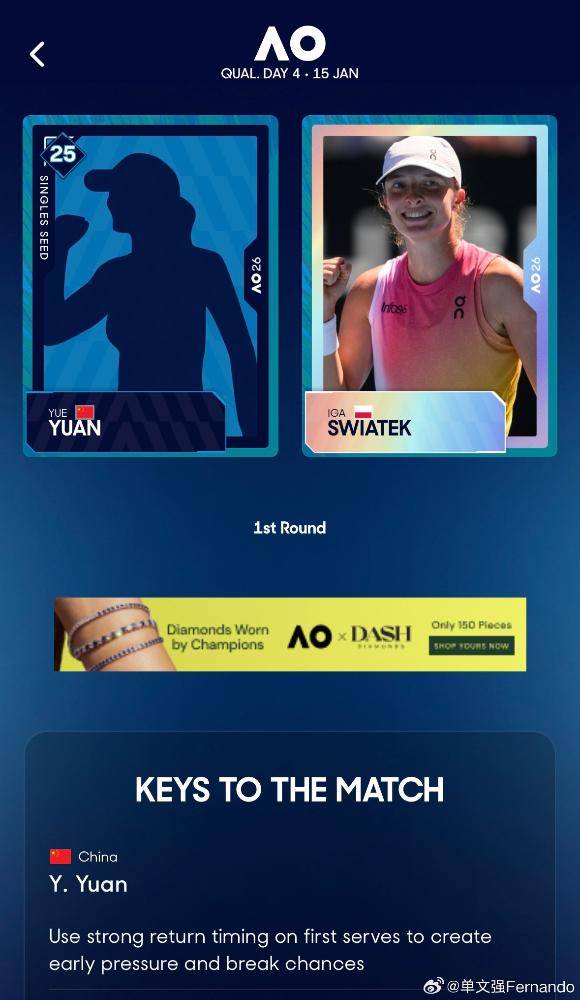 澳网2026 资格赛突围中国球员对位!袁悦vs斯瓦泰克🔥白卓璇vs帕夫柳琴科娃吴易昺vs纳尔迪!! 另外,王欣瑜首轮对阵Q卡列尼娜