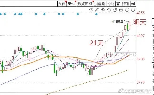 午评:早盘缩量全线大涨,下一个变盘时间窗口临近,兄弟姐妹们来听听莎莎哥怎么说从今天上午市场的走势来看,三大指数全线大涨,均已经实现了对昨天阴线的反包,并且上证指数,深证成指创反弹新高。关注莎莎的朋友都知道,昨天市场如期,出现了阴线调,昨天收盘之后,我在收盘点评视频当中,第1句话就明确告诉大家:明天是有机会的,无论明天是浅调还是深调,都是短线的机会。现在看来,我的这个观点,得到了市场的验证。那么现在问题来了,市场缩量大反包怎么看?缩量是不是意味着量能的背离呢?在这里我简单的给大家做一个回答:缩量上涨,代表了市场的抛盘压力是非常轻的,代表市场的持股信心是非常足的。所以才能实现缩量大阳线。所以缩量上涨在此时此刻,我们可以当成一个相对乐观的信号。但是我们也不能过分的乐观,因为接下来明天将是新的变盘时间窗口。大家请看下图——上证指数日线图。因为明天将是阶段低点到高点的第21个交易日。21是典型的斐波纳契变盘数字。也就是说,如果明天市场指数出现冲高的话,那么我们要小心明天出现阶段小高点的可能性。今天市场早盘的高点来到了4190点。关注我的朋友都知道,上周星期天的时候,我就通过波浪理论的原则,给大家计算了市场可能的目标,在4192点。今天市场大反包,直接来到了这个点位附近。那么这也意味着短线市场其实已经完成了,阶段的目标位。所以明天市场再冲高的时候,大家注意保持关注,我们到时候看看市场的量价关系,以及市场盘中是否会出现买盘不足或者抛盘加大的情况。一旦出现这些情况,我会第一时间发文告诉大家。中午收盘就和大家说这么多,大家点赞,评论就是对我这个纯技术派的最大支持。