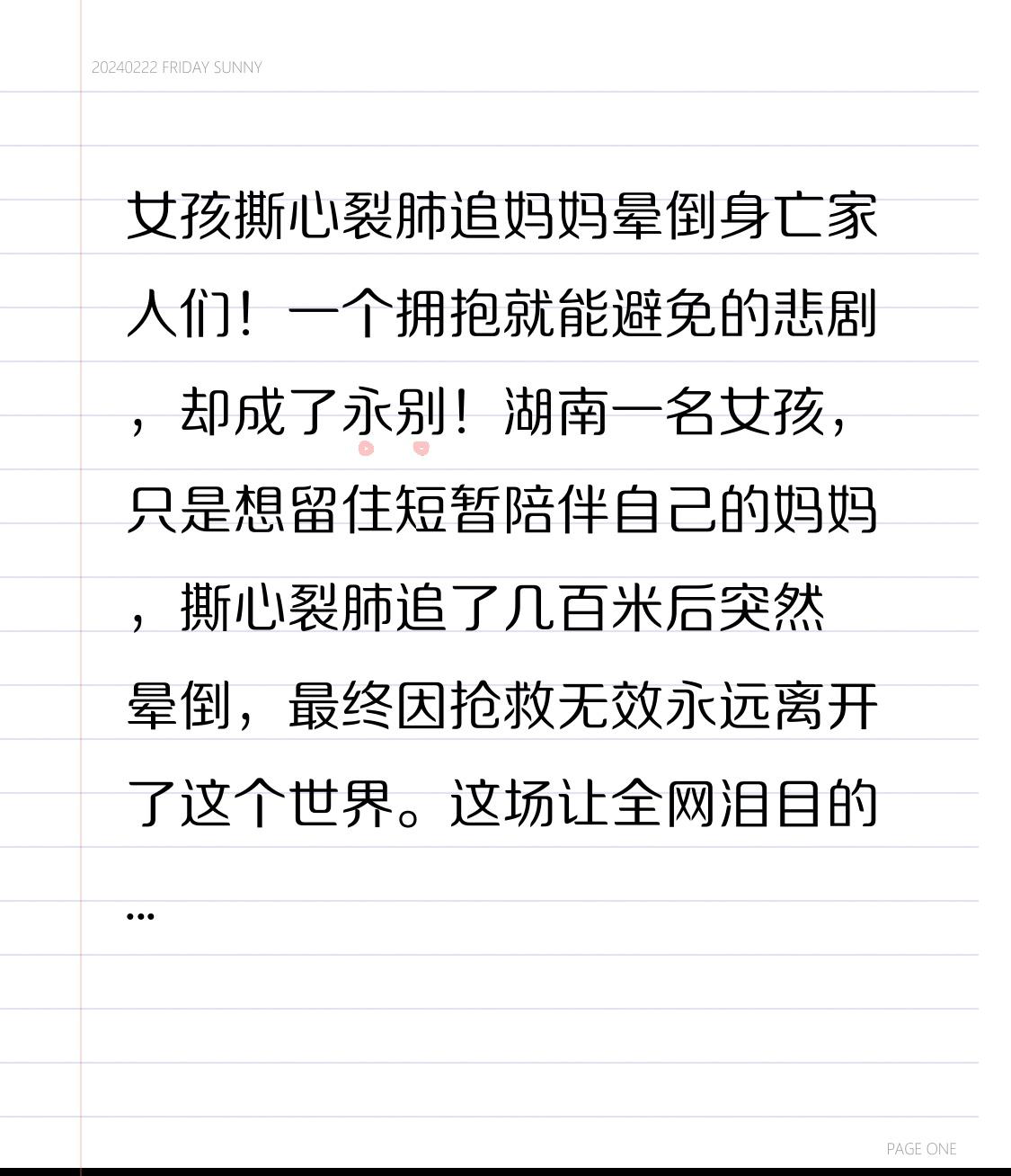 女孩撕心裂肺追妈妈晕倒身亡 家人们!一个拥抱就能避免的悲剧,却成了永别!湖南一