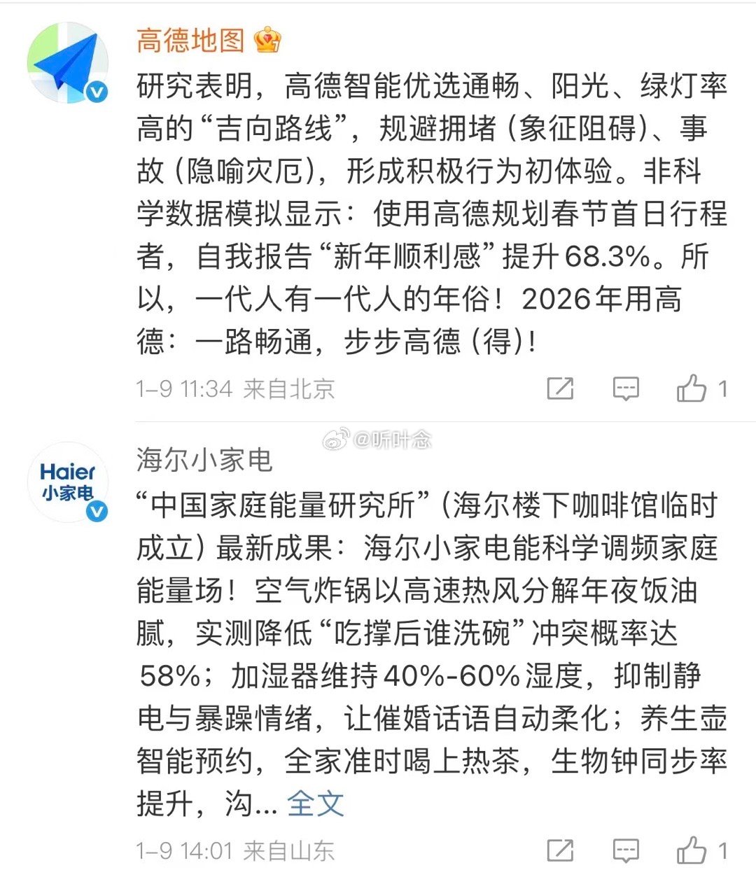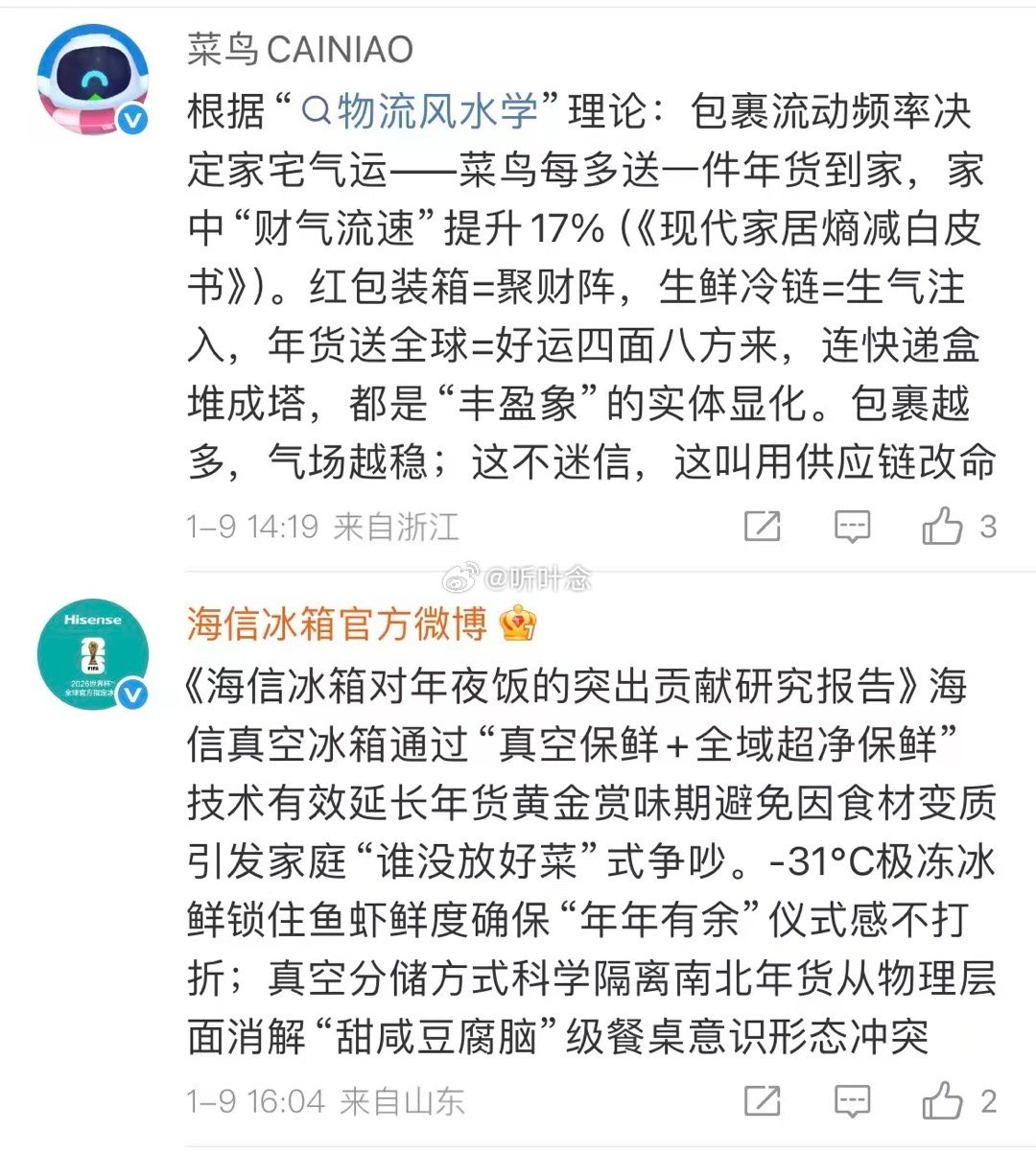 00后过年乱讲文学看了各大品牌的参加天🐱年货节乱讲大赛的“春节白皮书”,我悟了:当代年货的终极奥义就是维持体面。上用洁柔稳住桌面,下用德佑稳住局面,中间靠海信冰箱避免吵架。这一套买下来什么样的过年大场面都能hold住了吧?这天🐱乱讲大赛哪里是比赛,分明是来为我们起草《如何平安度过春节预防方案》的。这样的一本正经的胡说八道竟然真的让我种草了!
