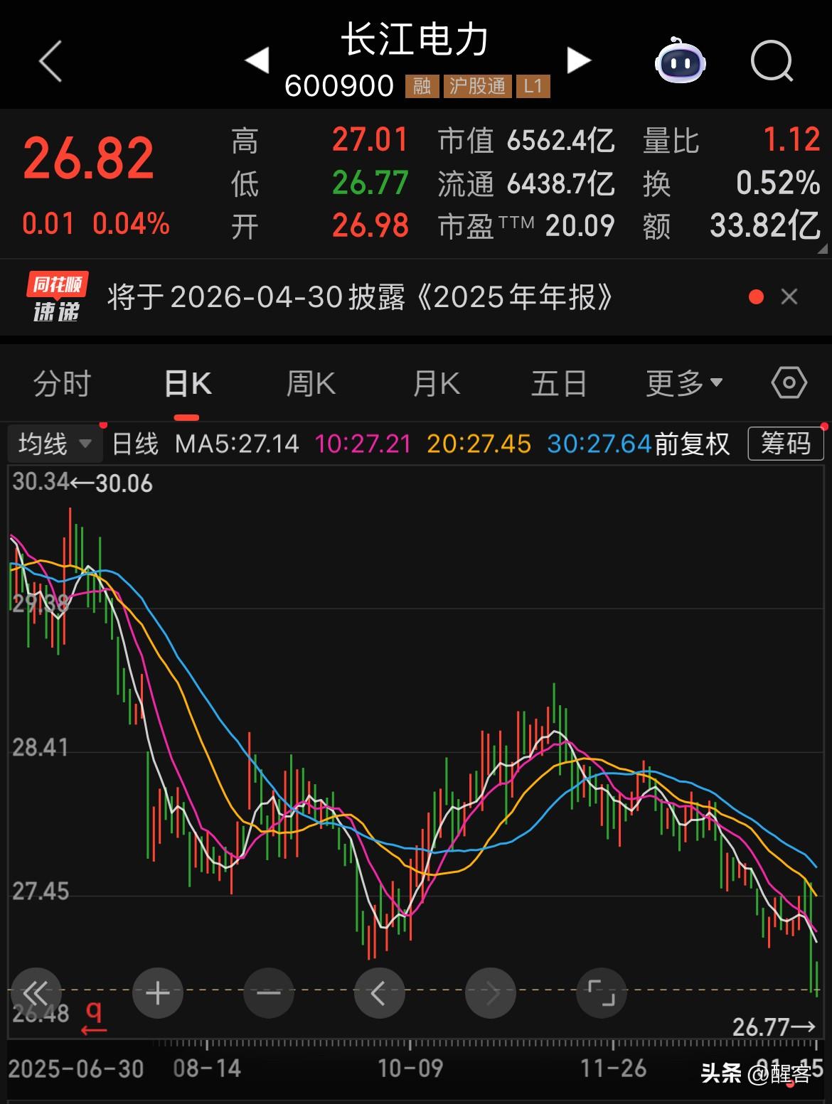 AI的终极竞争是能源之争,AI能源的核心是电力。“十五五”国家电网投资预计达4万亿元,创历史新高。2026年A股能源、电力板块大有可为。 但是为何长江电力再创阶段新低?