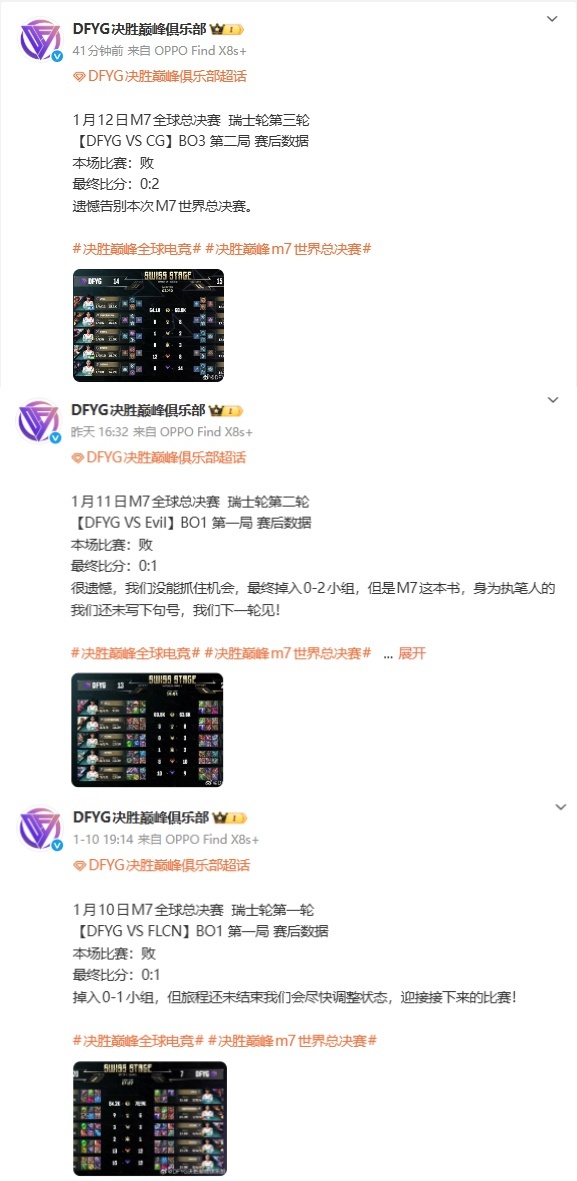 DFYG在决胜巅峰M7总决赛瑞士轮连败三局,我们中国赛区的一号种子就这样告别了M7世界赛,没想到我们认为这是最有希望的一年,没想到是这样的结局。这并不是一个好看的成绩,虽然失败让所有人都十分痛心,但痛心之余,有些问题我们还是要想想,我们中国赛区的战队接下来的路该怎么走,在世界赛场打出成绩到底需要解决什么,隔壁LOL和DOTA好歹都在世界赛有过好的成绩,什么时候能在决胜巅峰MLBB项目上有好的表现啊! 但话又说回来,不管是多么难看的战绩,我还是愿意相信我们的选手,我还是坚信只要时间能再长一点,给到中国赛区的机会还是在的!