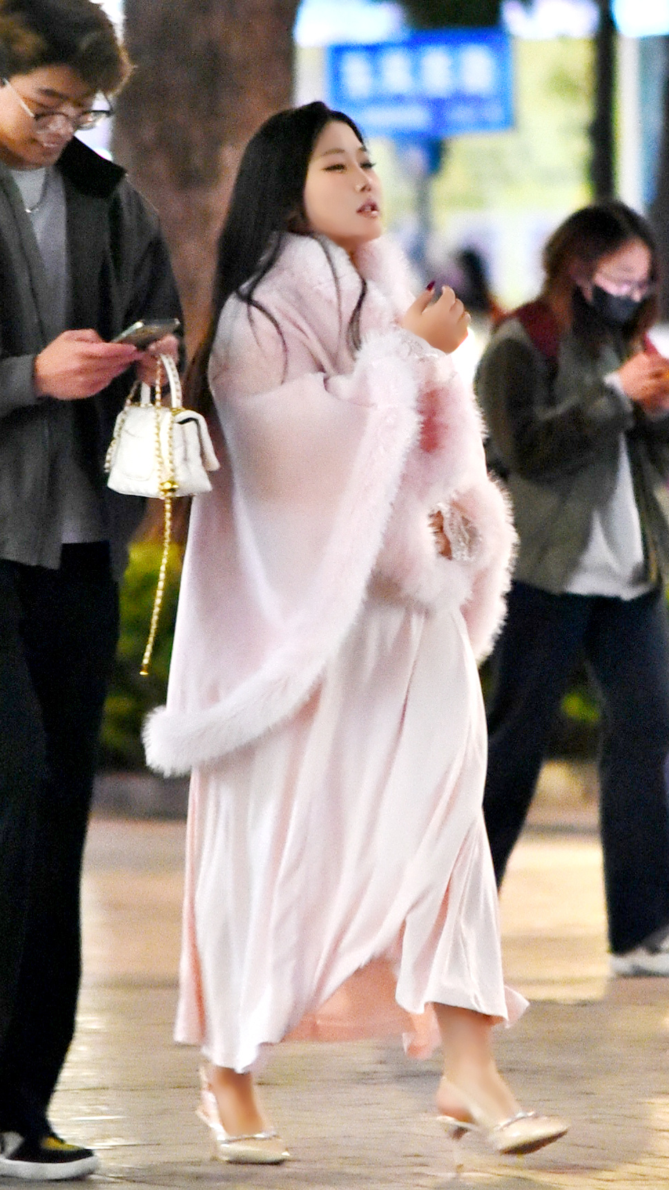 花海间的渐变温柔站在春日的花海中,蓝粉渐变的衣装恰似将天空的澄澈与繁花的绚